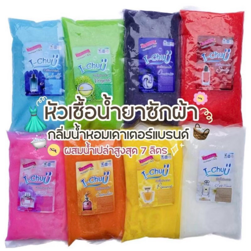 หัวเชื้อน้ำยาซักผ้า กลิ่นหอมสดชื่น เข้มข้น ขจัดคราบหนัก2เท่า หอมติดผ้ามาก I-Chuü (ไอ-ชูว์) *ปรับสูตรใหม่ เพียงผสมน้ำ 3-4 ลิตร ความข้นจะพอดีโดยไม่ต้องใส่ผงข้นเพิ่ม* ผสมน้ำเปล่าสูงสุดได้ 6 ลิตร เก็บได้นานถึง 2 ปี ใช้ได้ทั้งซักเครื่อง และซักมือ -ฟองเยอะ อ่อนโยน -ไม่ก่อให้เกิดการระคายเคือง -ไม่