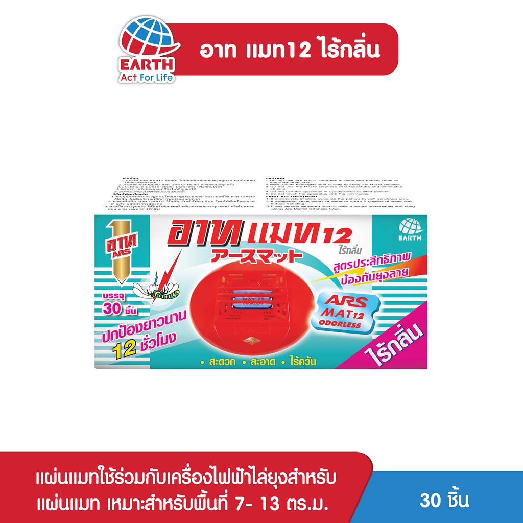 ... บัตรประกันตัวเครื่อง 1 ปี วิธีใช้ 1. วางเครื่องไฟฟ้าในแนวนอน แล้ววาง อาท แมท12 จำนวน 1 แผ่น ลงในช่องของเครื่อง 2. เสียบปลั๊กไฟ 3. ขณะใช้ อาท แมท12 ควรเปิดหน้าต่างให้อากาศถ่ายเท 4. ควรเปลี่ยน อาท แมท12 ใหม่ เมื่อแผ่น อาท แมท12 เปลี่่ยนจากสีฟ้าเป็นสีขาว (ใช้ได้นาน 12 ชั่วโมง แม้สีของแผ่นแมทจะจางลง) วิธีเก็บรักษา เก็บ อาท แมท12 ไว้ในที่แห้ง อย่าให้ถูกแสงแดด และให้ห่าง จากเด็ก อาหาร สัตว์เลี้ยง หรือ ความร้อน คำเตือน 1. อย่าใช้ อาท แมท12 ในห้องที่มีเด็กอ่อนหรือผู้ป่วย หรือในที่อับ ไม่มีอากาศถ่ายเท 2. ภายหลังการหยิบจับ อาท แมท12 ควรล้างมือทุกครั้ง 3. อย่าใช้ อาท แมท12 ใกล้อาหาร หรือวัตถุไวไฟ 4. อย่าคว่ำ หรือ ตะแคงเครื่องไฟฟ้าขณะใช้ 5. อย่าจับเครื่องไฟฟ้าขณะมือเปียกน้ำ วิธีแก้พิษเบื้องต้น 1. หากเกิดพิษจากการสูดดม ให้รีบนำผู้ป่วยออกจากบริเวณที่ใช้ อาท แมท12 ไปยังบริเวณที่มีอากาศถ่ายเทสะดวก 2. หากกลืนกิน อาท แมท12 รีบทำให้อาเจียน โดยให้ดื่มน้ำสะอาด 2 แก้ว แล้วทำการล้วงคอ 3. หากมีอาการรุนแรง ให้รีบนำส่งแพทย์ พร้อมภาชนะบรรจุ ฉลาก หรือใบแทรกของ อาท แมท12