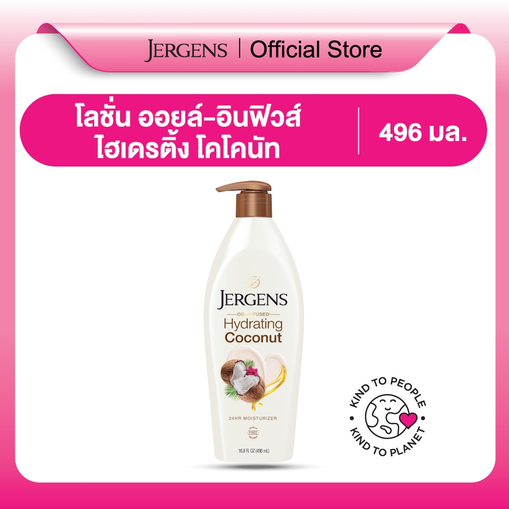เจอร์เกนส์ ออยล์-อินฟิวส์ ไฮเดรติ้ง โคโคนัท 496 มล. JERGENS OIL-INFUSED HYDRATING COCONUT 24-HOUR MOISTURIZER 496 ML