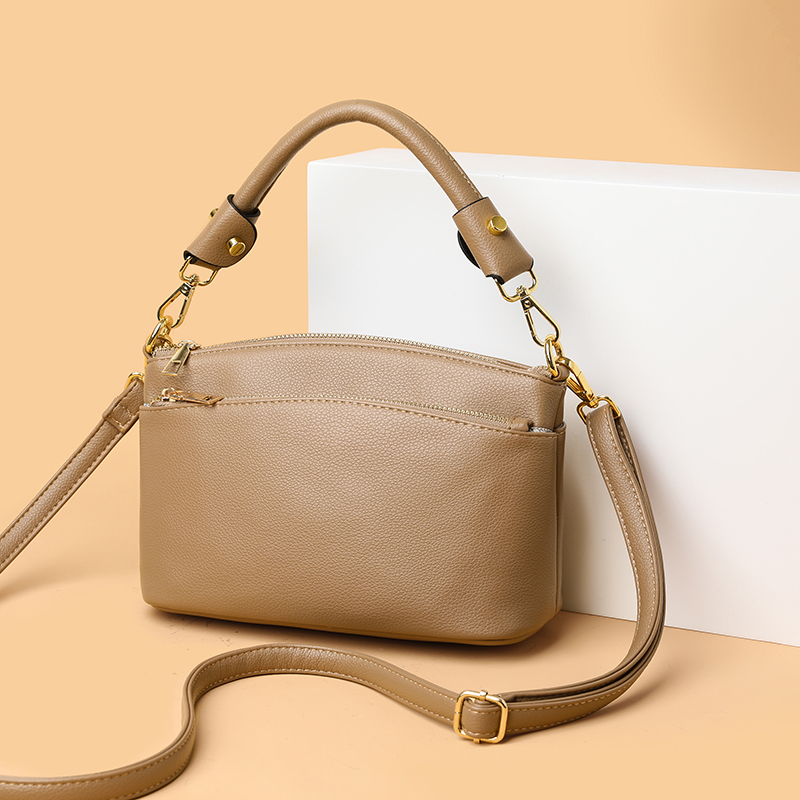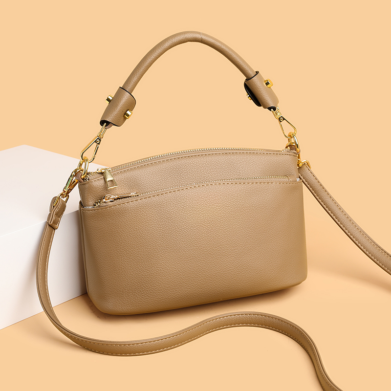 แฟชั่น All-Match สีทึบกระเป๋าหญิง Texture All-Match หนัง Multi-Layer Messenger กระเป๋า Casual Commuter ไหล่