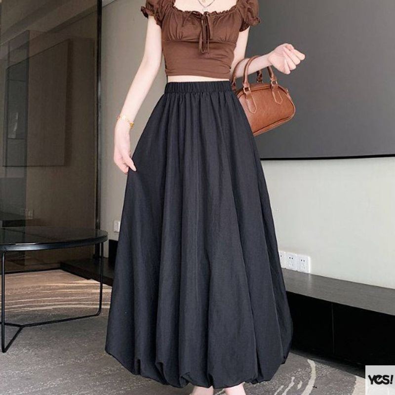 ฤดูร้อน High-end กระโปรง Elastic High เอว A-Line กระโปรงยาวผู้หญิงเผ็ดสาว Bud กระโปรง YES