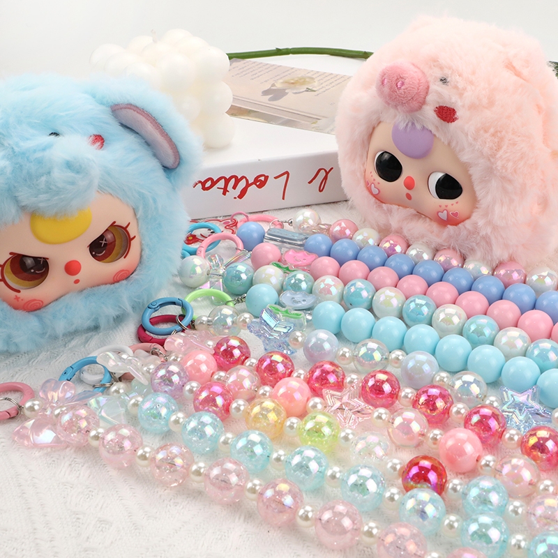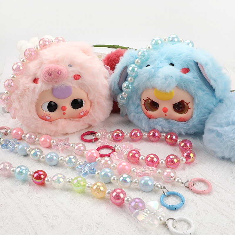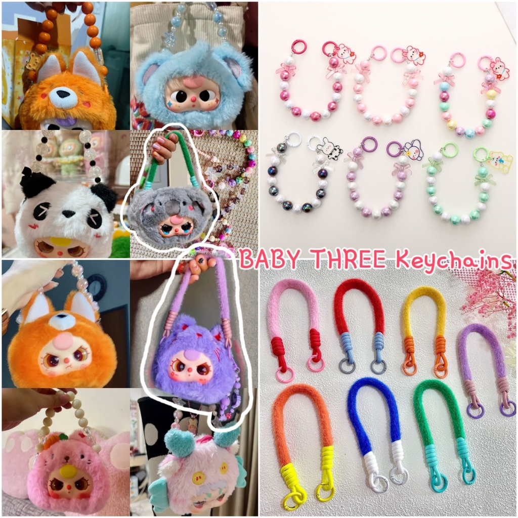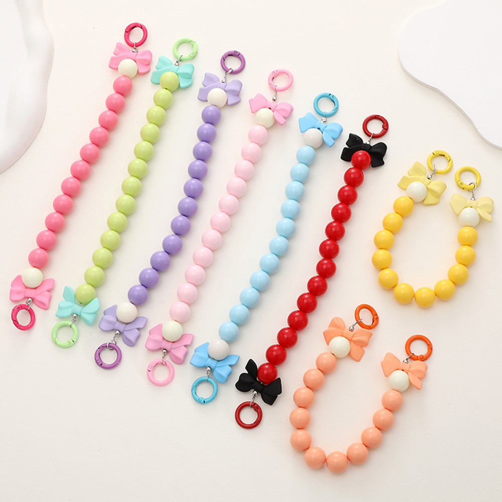 BABY THREE มือ-ลูกปัดกระเป๋าจี้การ์ตูนพวงกุญแจหูฟังกรณีตกแต่งโบว์ลูกปัดพวงกุญแจเชือกเส้นเล็กโทรศัพท์มือถือ อิน ข้อมือแขวนของขวัญที่มีสีสันมัลติฟังก์ชั่พวงก