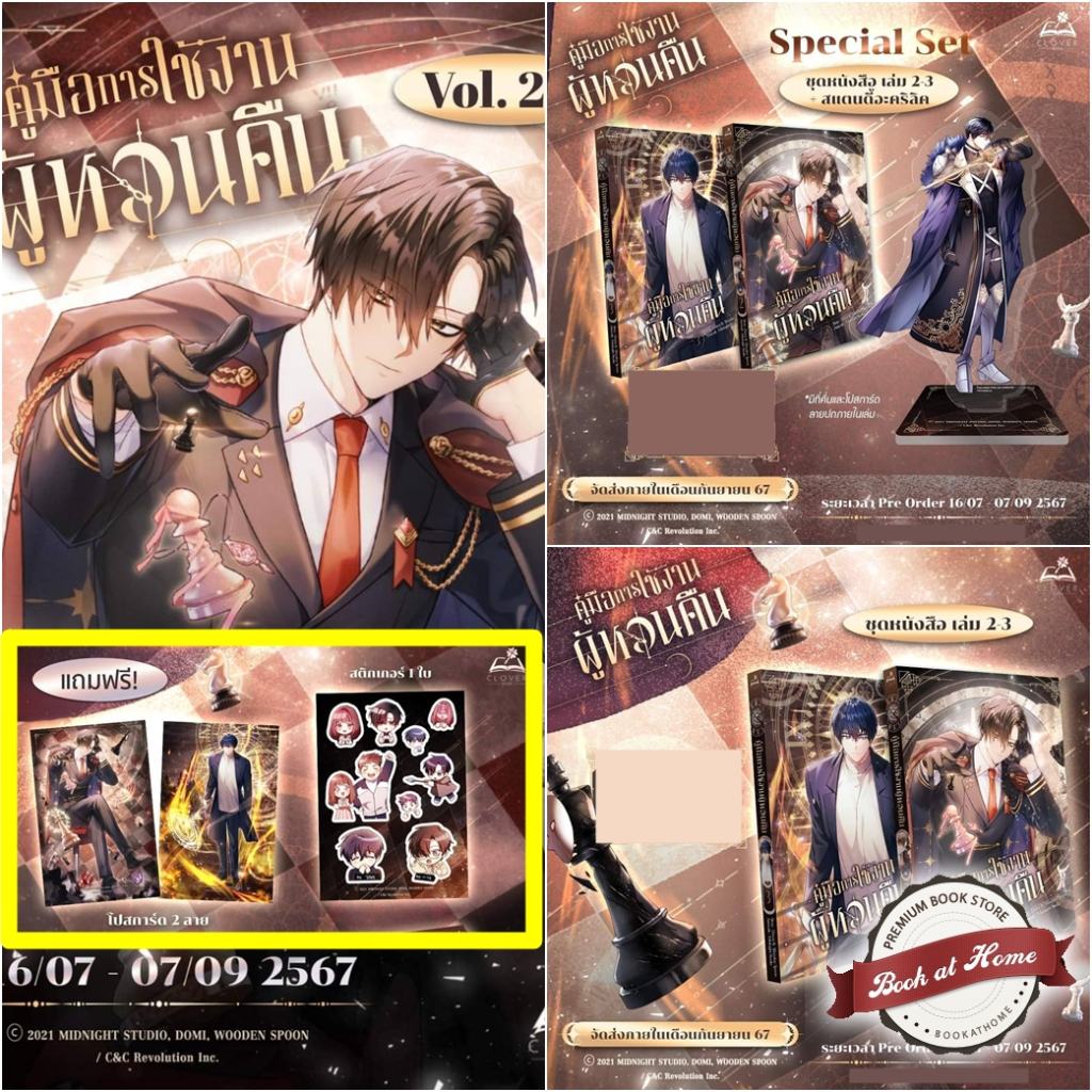 ... กับเล่มได้ / ไม่ขายเฉพาะสแตนดี้เปล่า / 📌 เล่ม 2 และ 3 กดคนละวันได้ / ไอดีเดียวกัน / ภายใน 7/9/67 📌 ได้ของแถมครบชุดตาม สนพ 📌 ร่วมโปรร้าน 📌 จัดส่งพร้อมกันทั้งชุด ไม่แยกเล่ม (ถ้ากดไม่ครบ - รอกดครบแล้วจัดส่งทีเดียวค่ะ) --------------------------------------------------------------- [PRE ORDER] ชุดหนังสือ คู่มือการใช้งานผู้หวนคืน เล่ม 2-3 ประกอบด้วย -หนังสือ เล่ม 2-3 -ที่คั่นและโปสการ์ดลายปกภายในเล่ม --------------------------------------------------------------- [PRE ORDER] Special Set คู่มือการใช้งานผู้หวนคืน เล่ม 2-3 ประกอบด้วย -หนังสือ เล่ม 2-3 -ที่คั่นและโปสการ์ดลายปกภายในเล่ม -สแตนดี้อะคริลิค --------------------------------------------------------------- 💎แถมฟรี! (ทุกชุด) -โปสการ์ดลายพิเศษ 2 ลาย -สติกเกอร์ จำนวน 1 แผ่น --------------------------------------------------------------- 💡คำโปรย ในระหว่างสำรวจดันเจี้ยน กียองรู้สึกสังหรณ์ใจกับพฤติกรรมที่แปลกไปของฮายัน เขาตัดสินใจทดสอบ ก่อนจะพบว่ามันอยู่เหนือความคาดหมายจากแผนการที่วางไว้ ไหนจะฮเยยองที่คอยมาสร้างความวุ่นวายอีก กียองจะรับมือกับการเปลี่ยนแปลงนี้อย่างไร… . . ——— #รายละเอียดการจัดส่ง ——— - สั่งซื้อหนังสือได้ไม่เกิน 1 เล่ม / 1 ออร์เดอร์ - งดสั่งซื้อรวมกับรายการ หนังสือ หรือ Box /Vbox อื่นๆ ในร้าน - ผิดเงื่อนไขตามข้างต้นมีค่าส่งเพิ่ม และอาจมีผลทำให้การจัดส่งของท่านล่าช้า - จัดส่งแบบ Seller Own Fleet แจ้งเลขออร์เดอร์ทางข้อความ . [ทางร้านจะตั้งกำหนดสินค้าเข้าไว้ที่ 120 วัน ที่ตั้งระยะเวลาไว้ยาวๆ ก่อนเพราะถ้ากำหนดคลาดเคลื่อนจะได้ไม่ส่งผลกระทบกับออเดอร์ และเพื่อไม่ให้ลำดับจองเลื่อนจะไม่เปลี่ยนกำหนดรับจนกว่าสินค้าจะเข้าร้านค่ะ / ขอบพระคุณค่ะ] . ——— #เงื่อนไขการเคลม ——— ✽ สินค้าจะไม่ได้มีให้เลือก เพราะฉะนั้นร้านจะสามารถดูให้เท่าที่สินค้าในล็อตนั้นๆ เข้าคลัง เพราะฉะนั้นด้านความสวยงามของกล่อง, หนังสือและของแถมเนื่องจากสภาพภายนอกไม่รับเปลี่ยน/คืนทุกกรณี ***รบกวนพิจารณาก่อนสั่งซื้อ*** ✽ ตรวจสอบสินค้าและแจ้งปัญหาภายใน 3 วันนับจากวันที่เซ็นรับพัสดุ (รับพิจารณาเฉพาะมีคลิป VDO ตั้งแต่เปิดกล่องไปจนถึงตรวจเช็กหนังสือ) ✽ กรณีหนังสือหน้าหาย หน้าสลับ หรือส่งผลต่อการอ่าน สามารถส่งเคลมกับ สนพ.ได้โดยตรง ✽ กรณีความเสียหายอันเกิดจากขนส่งให้เคลมขนส่งนั้นๆ (ขึ้นอยู่กับขนส่งพิจารณา)