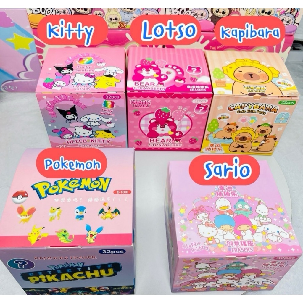 กล่องจุ่มยางลบ ตัวการ์ตูนน่ารัก ใน1กล่อง มี32จุ่ม สุดคุ้มกันเลย มีให้เลือกหลายลาย สินค้าพร้อมส่ง