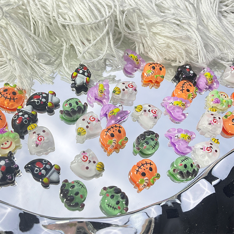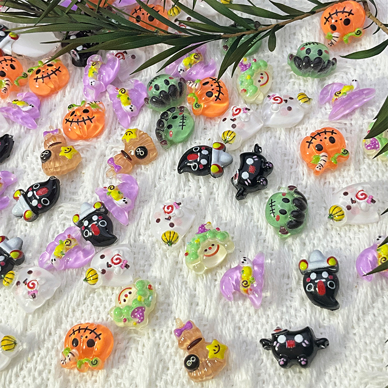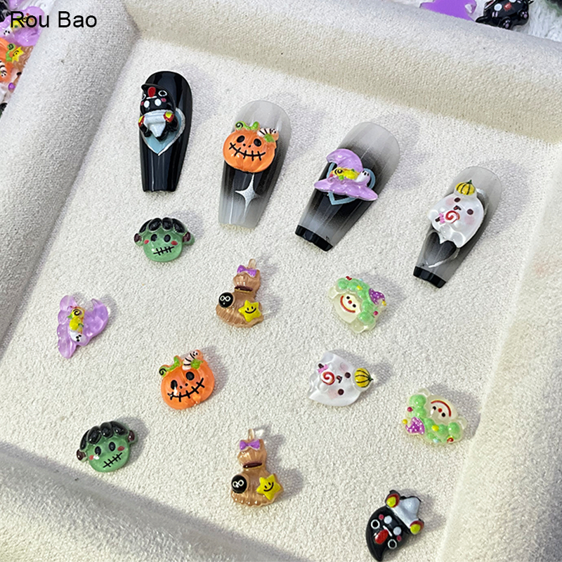 Rou Bao 50 ชิ้นเล็บฮาโลวีนฟักทอง Ghost แม่มดชุดการ์ตูนเรซิ่นเล็บ Art DIY Charms ตกแต่ง