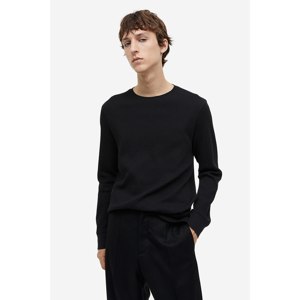 H&M Man Slim Fit Waffled jersey top 0795243_5