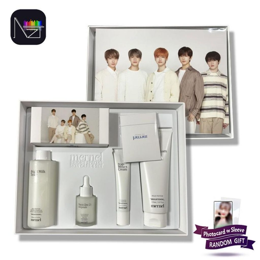 ✳️ พร้อมส่งสุดคุ้ม ✳️ NCT Dream x MERNEL Bright Special Skin Care SET MERNEL BRIGHT SPECIAL SET 1 เซ็ต จะได้รับสกินแคร์ทั้งหมด 4 ชิ้น ประกอบไปด้วย - Bright Milk Cleansing Foam หมดอายุ 1/25 - Bright Milk Toner 23/1/25 - Niacin Zinc 21 Ampoule 24/1/25 - Bright Mela X Cream 24/1/25