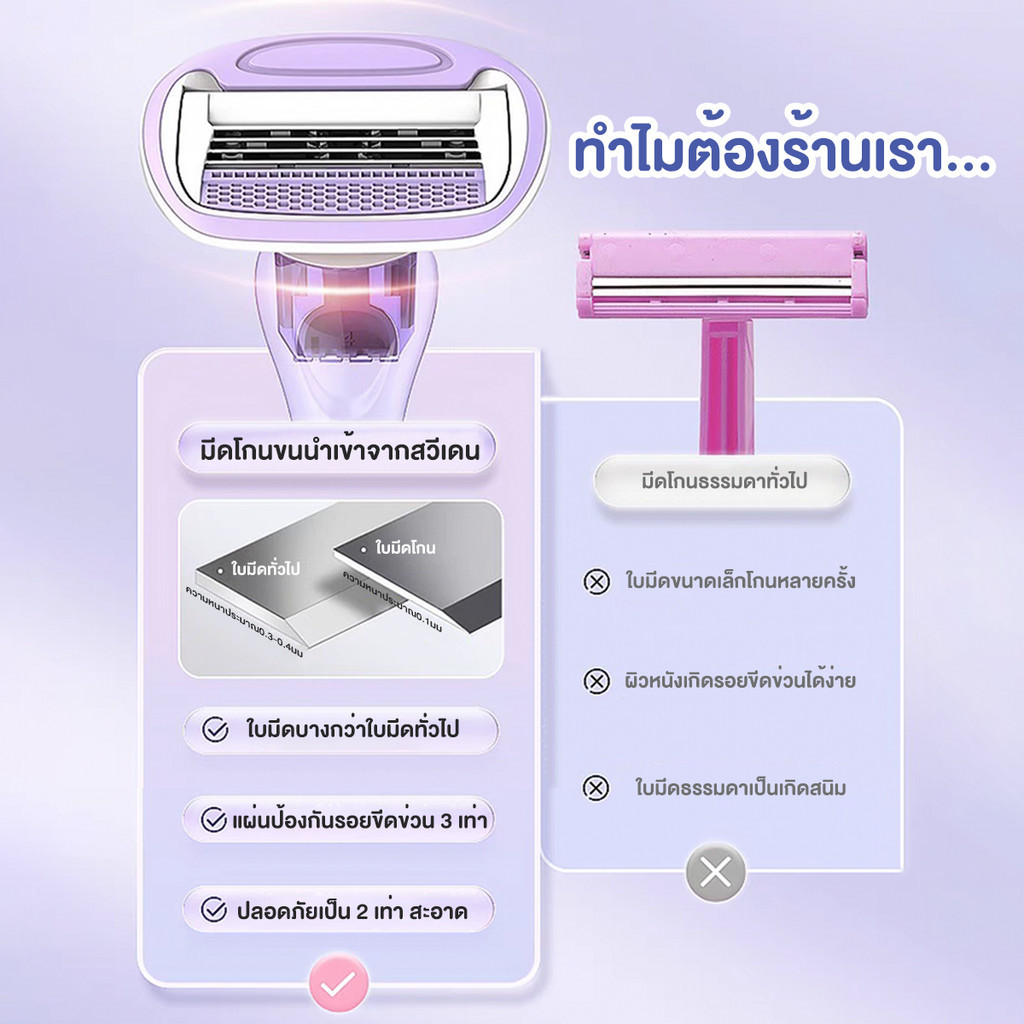 โกนขนผู้หญิง เครื่องโกนขนรักแร้ มีดกําจัดขน กําจัดขนไม่เจ็บปวด ไม่เหลือรอยดำ กำจัดขนรักแร้ for Women's Razor