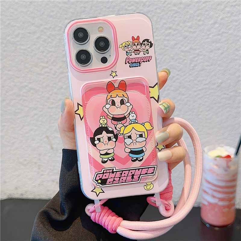 ใช้งานร่วมกับสําหรับ IPhone 15 14 13 12 11 Pro Max X XR Max 7 8 Plus INS การ์ตูนน่ารัก Powerpuff Girls เคสโทรศัพท์ Soft