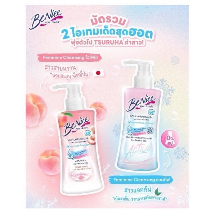 ... งยาวนาน ผิวโกลว์ ลดการสะสมแบคทีเรีย กระจ่าง อ่อนโยน • ผสานน้ำแร่บริสุทธิ์จากฝรั่งเศส 🩵BeNice Feminine Deo Fresh (ฟ้า)🩵 • สูตรใส ปกป้องยาวนาน ลดกลิ่นอับ คงความสดชื่นอย่างอ่อนโยน • ด้วยสารสกัดจาก Passion Flower ผสานน้ำแร่บริสุทธ์ 🤍BeNice Feminine Extra Sensitive (ขาว)🤍 • สูตรใส ปกป้องยาวนาน สะอาด มั่นใจ อ่อนโยน ดูแลผิวบอบบางเป็นพิเศษ • สารสกัดจาก Mallow Flower ผสานน้ำแร่บริสุทธิ์ ไม่ทำให้เกิดอาการแพ้และระคายเคือง • ผสานคุณค่าน้ำแร่บริสุทธิ์จากธรรมชาติและสารสกัดจากพืช 4 ชนิด • บีไนซ์ช่วยลดการสะสมแบคทีเรีย ลดการระคายเคือง • ผลิตภัณฑ์เพื่อจุดซ่อนเร้น บีไนซ์ สูตรดูแลผิวบอบบางเป็นพิเศษ ไม่ก่อให้เกิดการระคายเคือง 🍑BeNice Feminine White Peach (พีช)🍑 • สารสกัดพีชจากประเทศญี่ปุ่น เติมความชุ่มชื่นให้ผิว ให้ผิวดูสวย สุขภาพดี • Niacinamide หรือวิตามินบี 3 ช่วยให้ผิวสุขภาพดี สว่างใส เปล่งประกาย • pH Balance ให้จุดซ่อนเร้นมีสุขภาพที่ดี คงความสมดุล ชุ่มชื้นไม่แห้งตึง 💜 BeNice Feminine Collagen 9 Complex + Vit C (ม่วง)💜 • ผสานวิตามินซี และ คอลลาเจน 9 ชนิด • ให้ความชุ่มชื้นกับผิว และ คงสมดุลน้ำหล่อเลี้ยงตามธรรมชาติ • ผสานไมโครคอลลาเจน ช่วยเพิ่มความยืดหยุ่นให้ผิวสวย กระชับเปล่งปลั่ง 💧BeNice Feminine For Sensitive Skin (Active)💧 •ผสานน้ำแร่บริสุทธิ์จาดเย็นธรรมชาติ และ Lactic Acid ช่วยทำความสะอาดอย่างิ่อนโยน •เย็นสดชื่น จากสารสกัดธรรมชาติ •ผสานไฮายาลูรอน ดูแลอย่างอ่อนโยน เหมาะกับทุกสภาพผิว