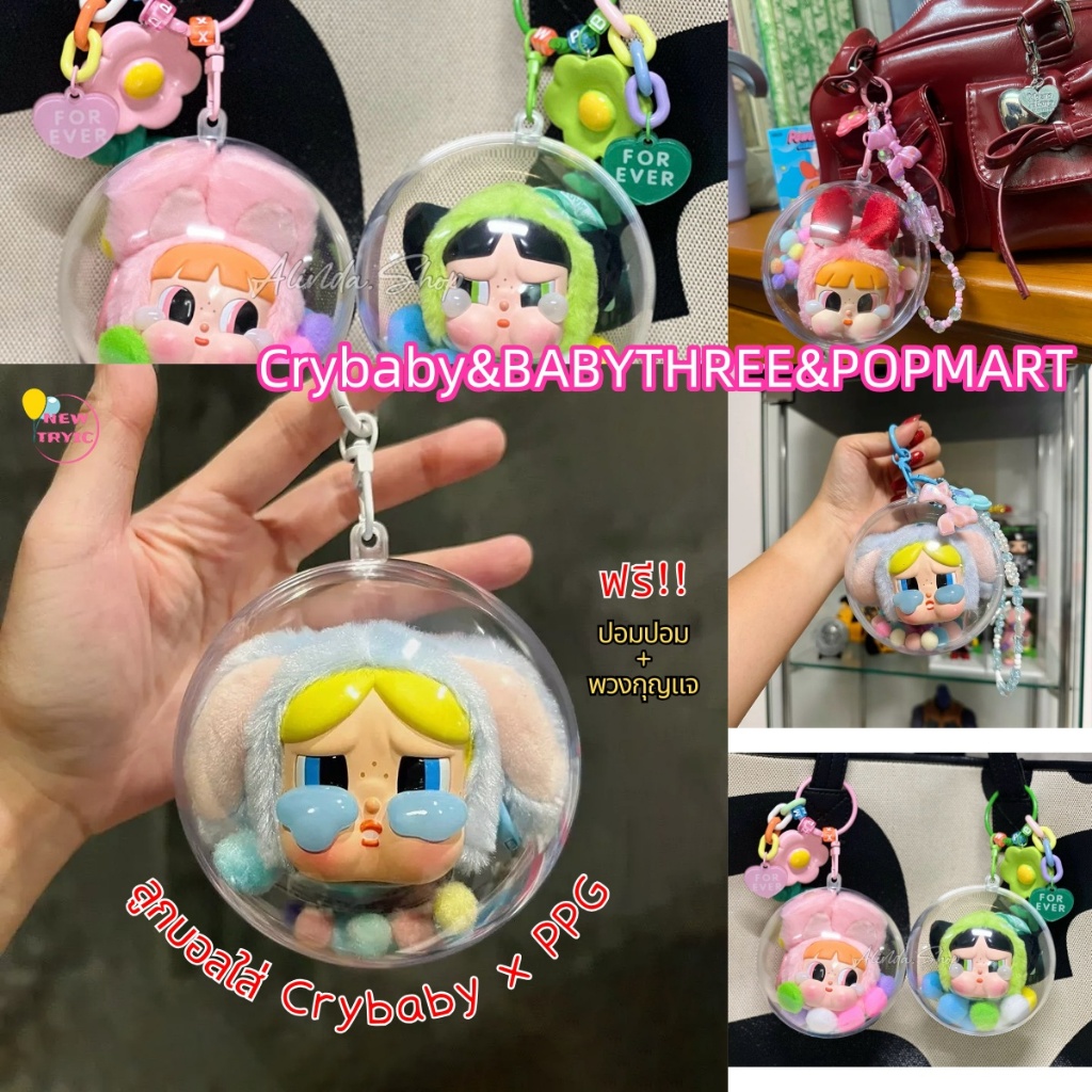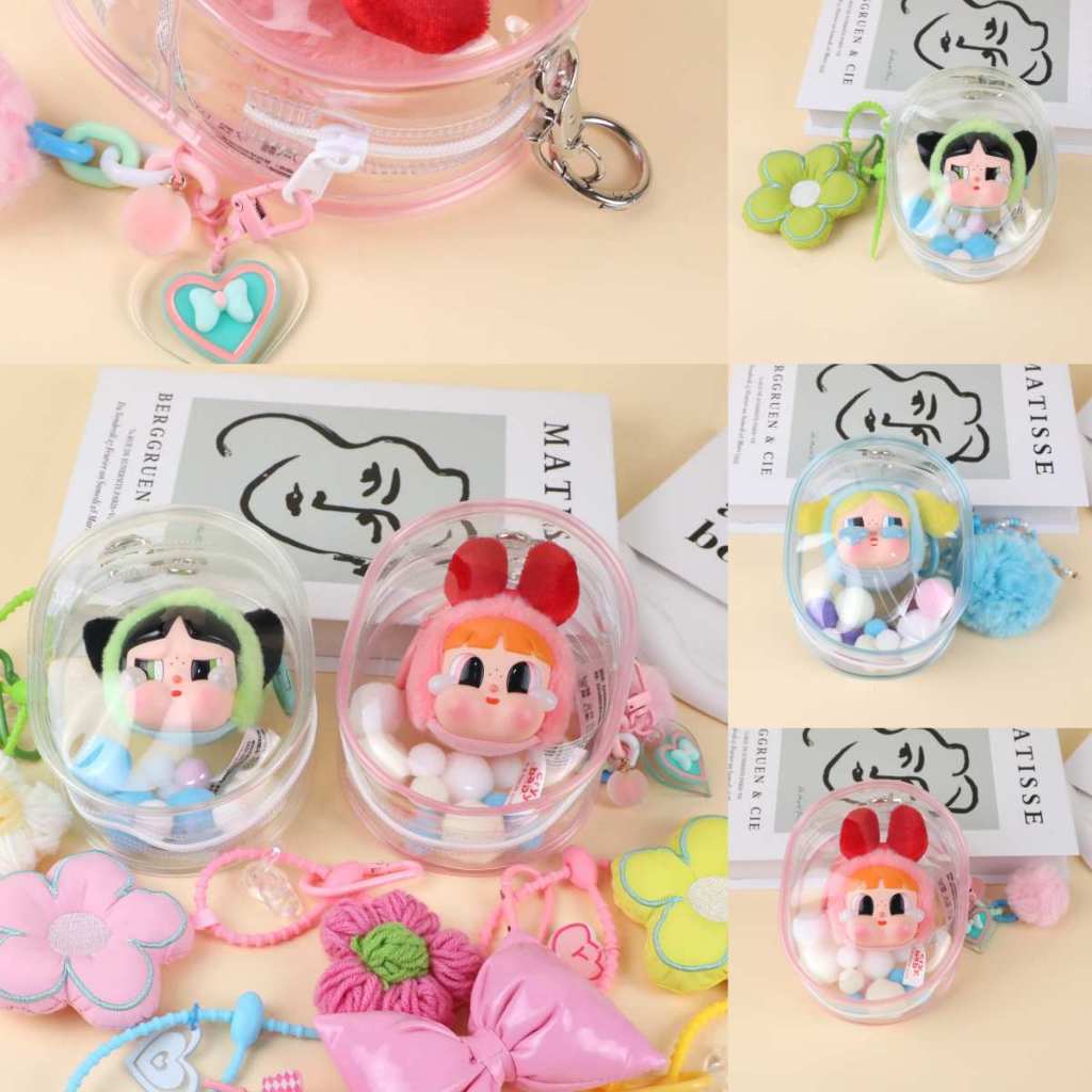 🔥🔥🔥Crybaby POWERPUFF GIRLS กระเป๋าเก็บพวงกุญแจกระเป๋า Mystery Box Case Organizer กระเป๋าสตางค์ Thicken ตุ๊กตาโปร่งใสคลาสสิก DIY