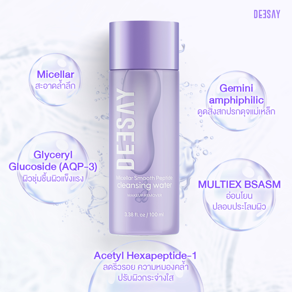DEESAY : คลีนซิ่ง วอเตอร์ MICELLAR SMOOTH PEPTIDE CLEANSING WATER 100ml ดีเช้ย์ ไมเซล่า สมูธ เปปไทด์ คลีนซิ่ง วอเตอร์