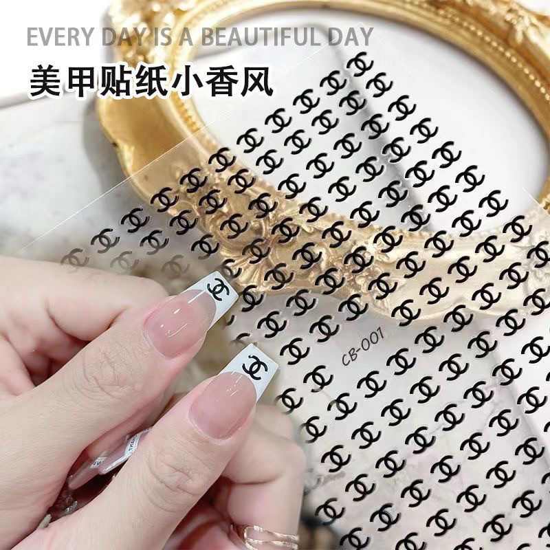 สติ๊กเกอร์ติดเล็บ ลายโลโก้ หรูๆ ชาแนลสีดำ CC