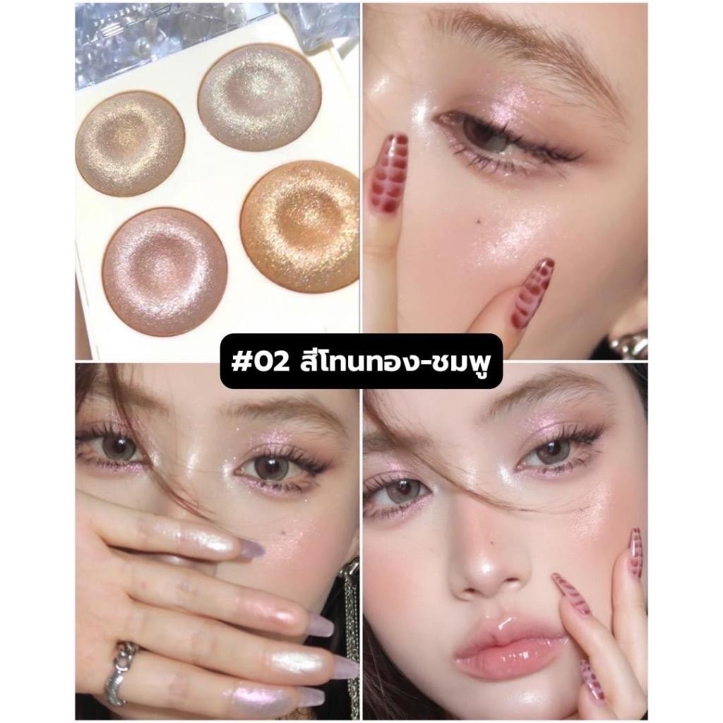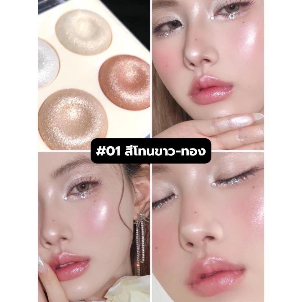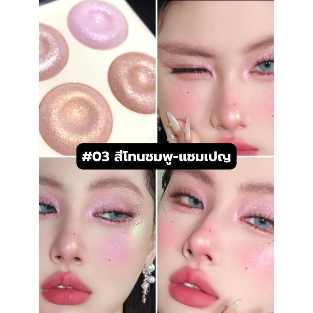 M447 MSYAHO พาเลทไฮไลท์โดนัท 4 สี กลิตเตอร์ ฉ่ำวาว เนื้อละเอียด เม็ดสีชัด ติดทน