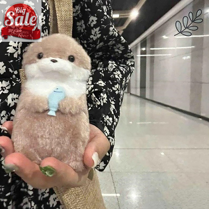 Af นากน่ารักถือปลาพวงกุญแจตุ๊กตาน้ําหนักเบาแขวนจี้ Props สําหรับกระเป๋านักเรียนกระเป๋าสตางค์ A