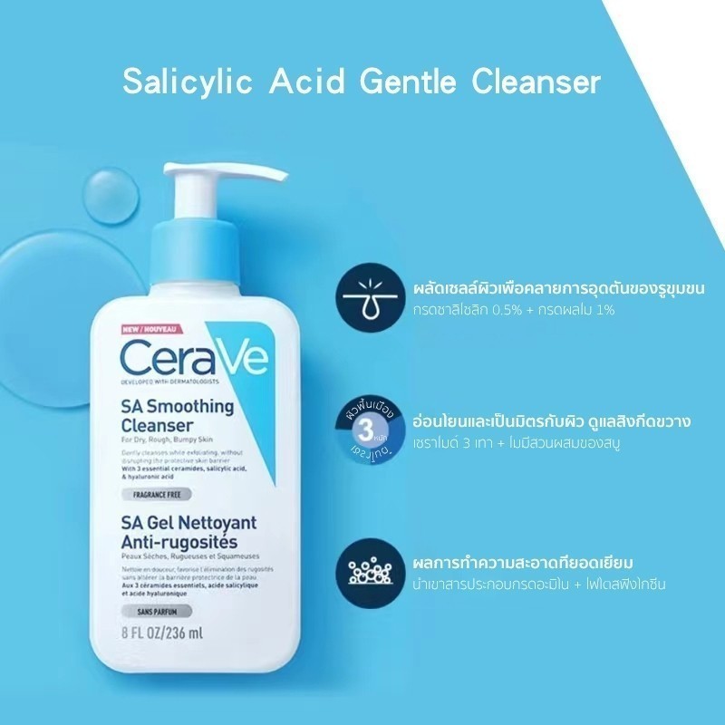 CERAVE MoisturisingLotion/SA Smoothing/Foaming/Hydrating Cleanser 236ml/473ml ผลิตภัณฑ์ทำความสะอาดผิวหน้าและผิวกาย สูตรสำหรับผิวหยาบกร้าน ผิวมัน ไม่เรียบเนียน