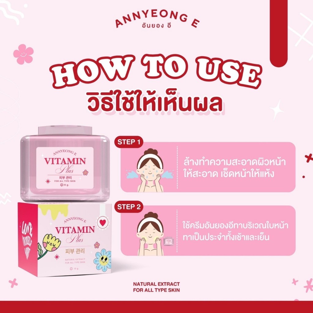 [2 กระปุก] ANNYEONG E VITAMIN PLUS อันยอง อี วิตามิน พลัส ครีมอันยองอี ลดสิว หน้าใส กระชับรูขุมขน