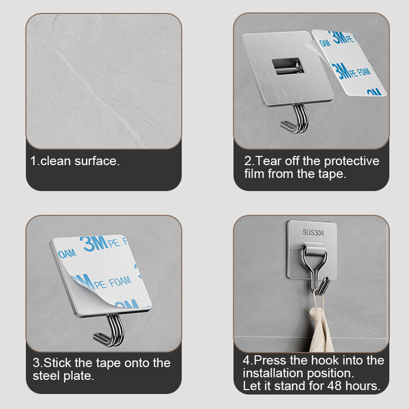เกรดสูง ตะขอแขวนสติกเกอร์ตะขอ ของพวกเขา304,ตะขอสติกเกอร์สแตนเลสเหมาะสําหรับบ้านฉากต่างๆ,ไม่เคยสนิมตะขอ,304ตะขอสติกเกอร์สามารถติดกับกระเบื้องไม้แก้วพื้นผิวสแตนเลสแผงประตูห้องน้ําครัวใช ตะขอสแตนเลส 304