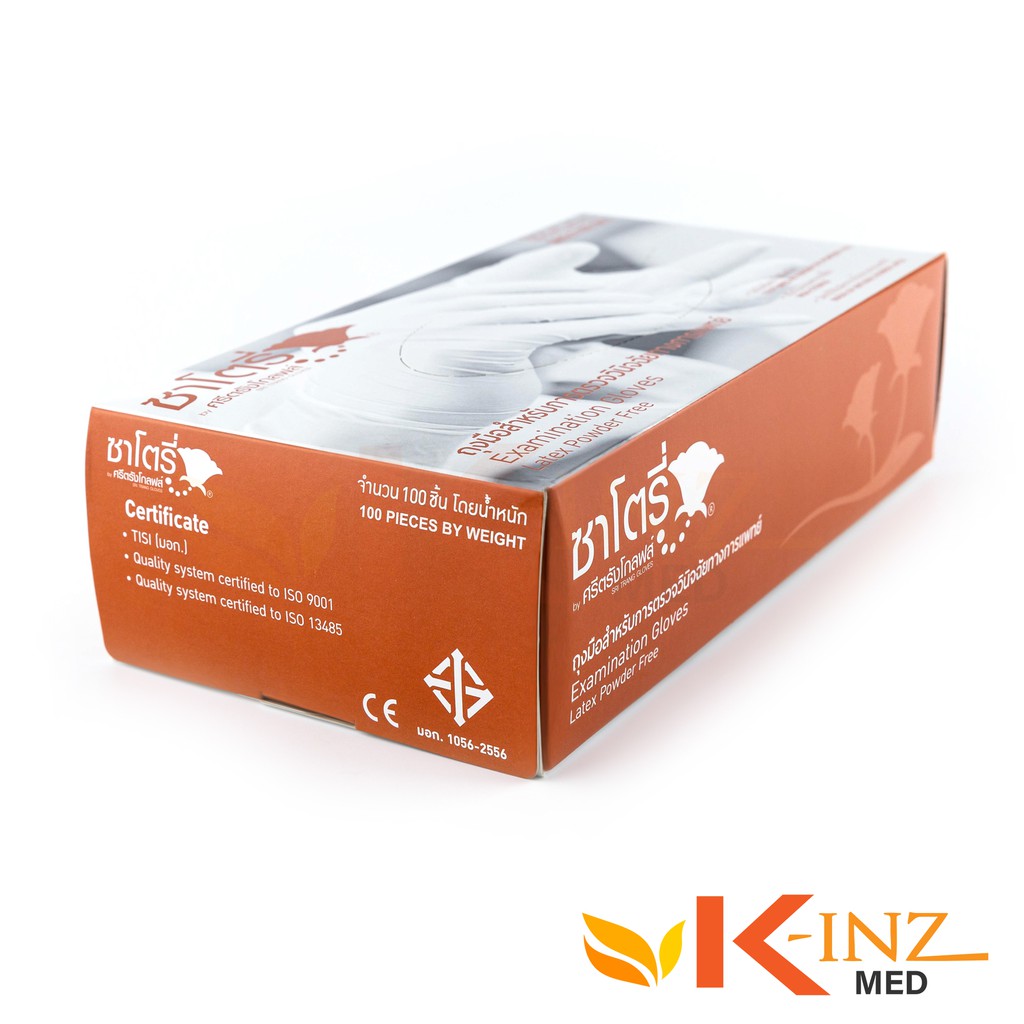 ถุงมือตรวจโรคยางธรรมชาติ ยี่ห้อ ซาโตรี่ ชนิดไม่มีแป้ง กล่องน้ำตาล (บรรจุ100 ชิ้น/ก)