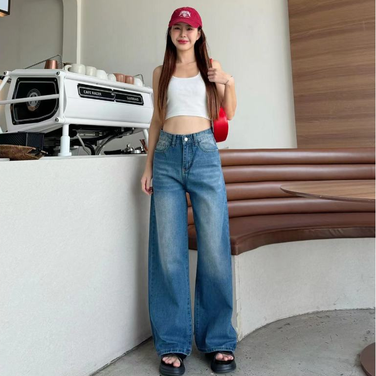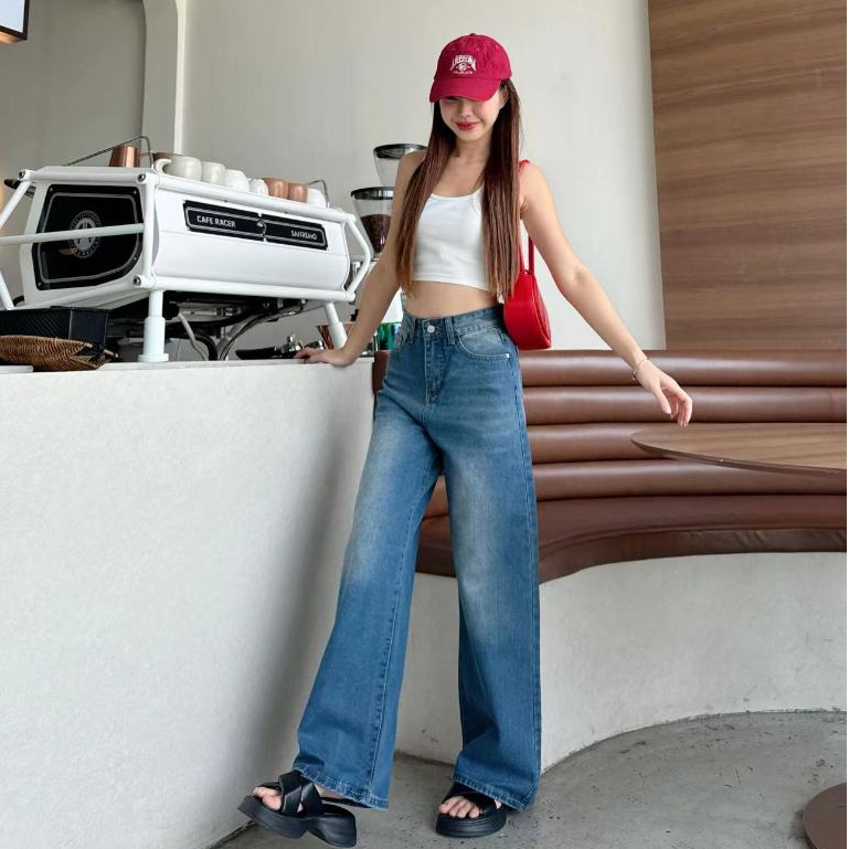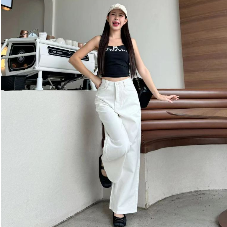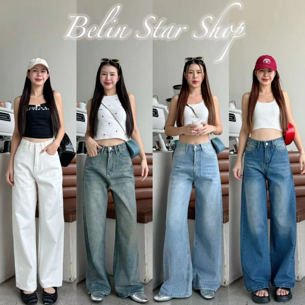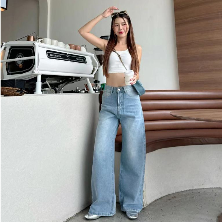 กางเกงยีนส์เอวสูง ทรงลิซ่า กระบอกใหญ่ ทรงสวย ใส่ สบาย แมทง่าย ใส่ได้ทุกลุค