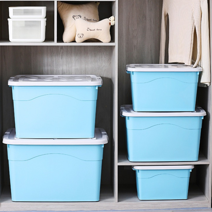 Blue Sky กล่องเก็บของพลาสติกอเนกประสงค์ความจุขนาดใหญ่ กล่องเก็บของในรถยนต์ กล่องเก็บเสื้อผ้า