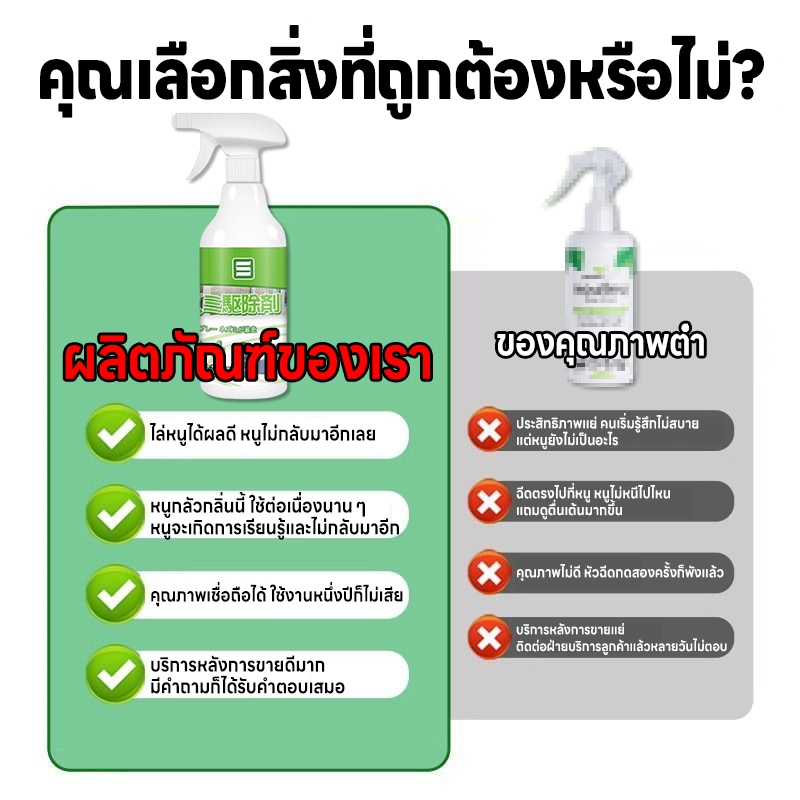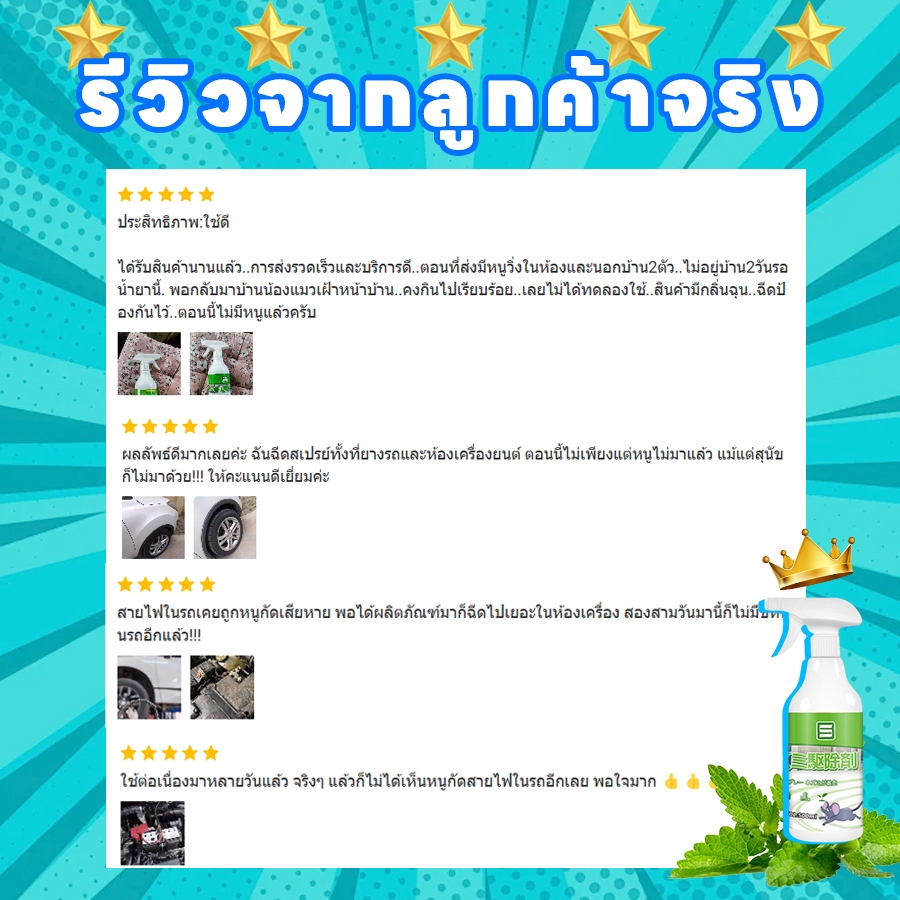 ... มาณของผลิตภัณฑ์: 500ml. ขอบเขตการใช้งาน: ห้องนอน, ห้องครัว, คลังสินค้า, โรงแรม, รถยนต์ ฯลฯ ข้อควรระวัง 1. เก็บไว้ในที่เย็นและแห้ง, ห่างจากเด็กหรือสัตว์เลี้ยง 2. ก่อนใช้กรุณาเขย่าให้เข้ากันเพื่อผลลัพธ์ที่ดีที่สุด, หลังใช้ควรล้างมือ 3. ห้ามฉีดเข้าตาและจมูก หากฉีดผิดที่ให้ล้างด้วยน้ำ 4. การใช้งานในห้องเครื่องรถ: ฉีดพ่นบริเวณด้านบนของยางหน้าและรอบ ๆ รถที่หนูกัด ฉีดทุกวัน ฉีดต่อเนื่องหลายวัน ถ้าต้องการลดอุณหภูมิภายในห้องเครื่องก่อนฉีด 🛒สั่งซื้อก่อน 16:00 สามารถจัดส่งในวันเดียวกัน!🚛 ⭐⭐ภาพถ่ายทั้งหมดเป็นภาพถ่ายจริง, ได้สิ่งที่คุณเห็น!⭐⭐ 👉9:00-18:30 หากคุณมีข้อสงสัยใด ๆ เราจะตอบกลับโดยเร็วที่สุด💬 #ไล่หนู #rat #repellant #spray #สเปร์ไล่หนู