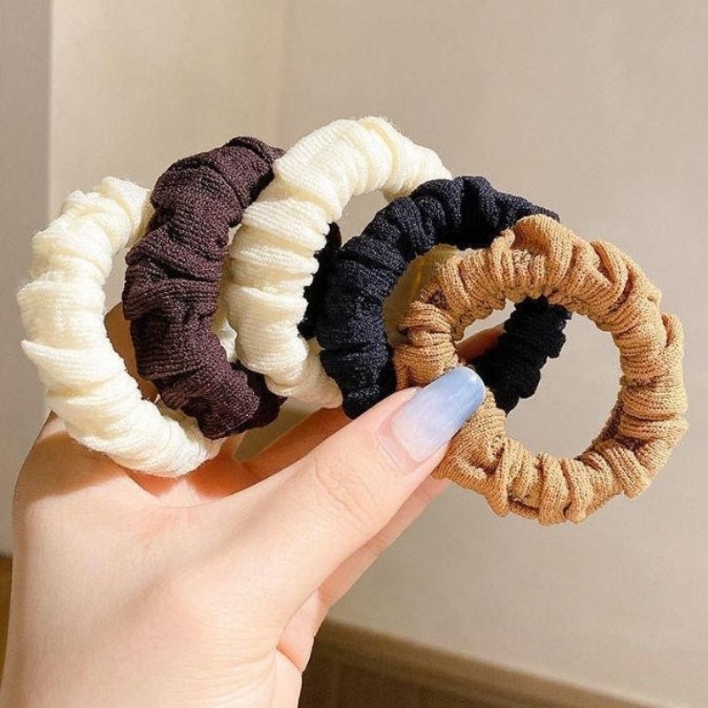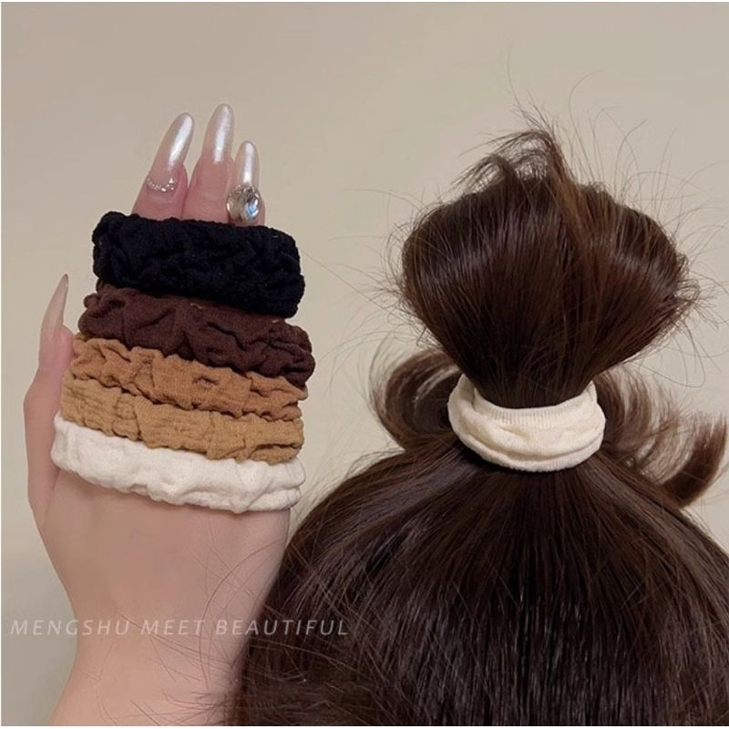 BER24 หนังยางมัดผมแบบผ้า หนังยางมัดผมหางม้ามัดแน่น ไม่กินผม พร้อมส่งในไทย พร้อมส่ง 5 สี •ดำ •น้ำตาลเข้ม •กาแฟ •กากี •เบจ ขนาด 5 เซ็นติเมตร ราคา 5 บาทต่อ1 เส้น