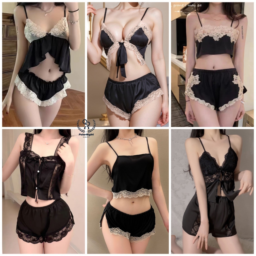 polar_night 💋ชุดนอนเซ็กซี่ ✨ผ้าซาตินคุณภาพสูงหลากสไตล์เซ็กซี่ 💕ชุดนอนลูกไม้🚚ส่งไวจากไทย1-3วัน(两件套)