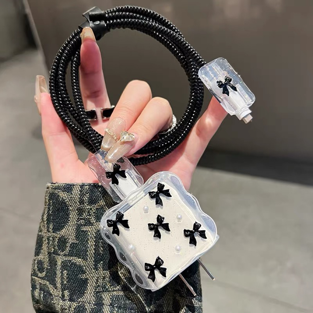 ราคาถูกที่สุด ส่งจากไทย มาใหม่ ชุดโบว์เพชรดำ ชุดถนอม 5ชิ้น Apple Adapter 18W/20W สายชาร์จ ลายการ์ตูนน่ารัก Cable
