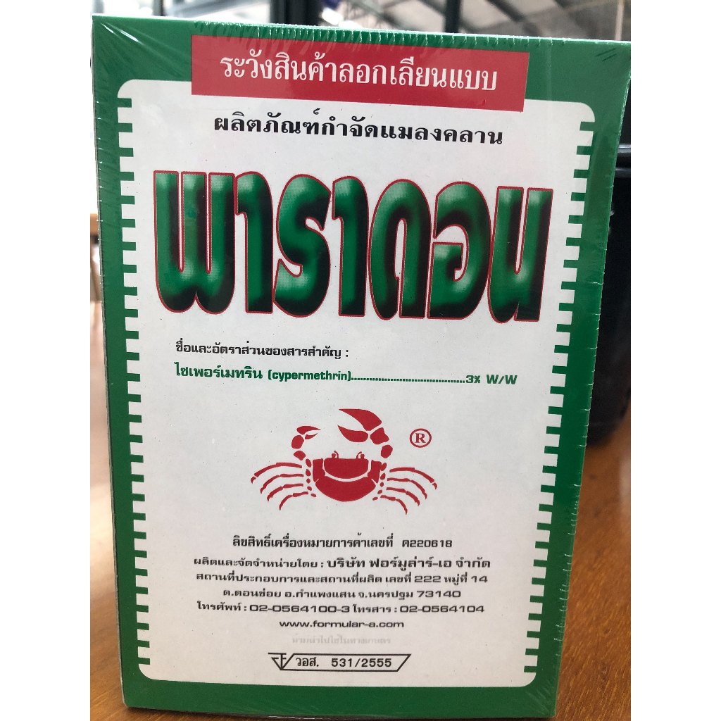 ... มลงคลานใช้ พาราดอน ผสมน้ำในอัตราส่วน 85 กรัม ต่อน้ำ 20 ลิตร ฉีดพ่นได้ 400 ตารางเมตร ● ควรเขย่าก่อนใช้ฉีดตามทางเดินซอกมุมที่หลบซ่อนของแมลงทั้งภายในและภายนอกอาคาร ● วิธีการเก็บรักษา : ต้องเก็บ พาราดอน ให้มิดชิดในภาชนะเดิมที่ปิดแน่นและมีฉลากติดอยู่ ไม่ให้ถูกแสงแดด สถานที่เก็บต้องแห้งและเย็น ห่างไกลจากเด็ก อาหาร น้ำดื่ม สัตว์เลี้ยงและเปลวไฟ ● คำเตือน : พาราดอน เป็นวัตถุอันตรายที่มีพิษ ต้องใช้ด้วยความระมัดระวัง เพื่อป้องกันมิให้เป็นอันตรายต่อผู้ใช้และสิ่งมีชีวิตอื่นๆ ● **แนะนำให้ใช้ภายนอกบ้าน นอกอาคารบริเวณรั้วบ้าน ทางเข้าบ้าน ขอบประตูภายนอกนะคะ ● **ไม่แนะนำให้ใช้ภายในบ้านค่ะ มีกลิ่นเหม็น หากมีเด็กเล็ก ต้องระวัง ไม่ควรเข้าใกล้นะคะ