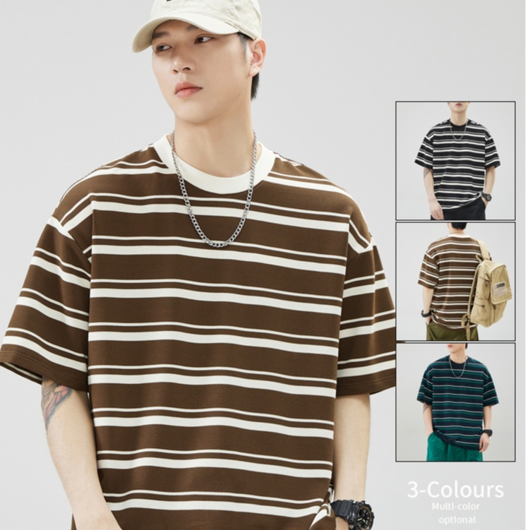 ⚡️Proman⚡️ [ 3 สี COD ] แขนสั้นผู้ชาย ลายทาง แขนสั้น ฤดูร้อน ยอดนิยม แบบหลวม วัยรุ่น แห้งเร็ว เสื้อผ้า ไม่เสียรูปง่าย