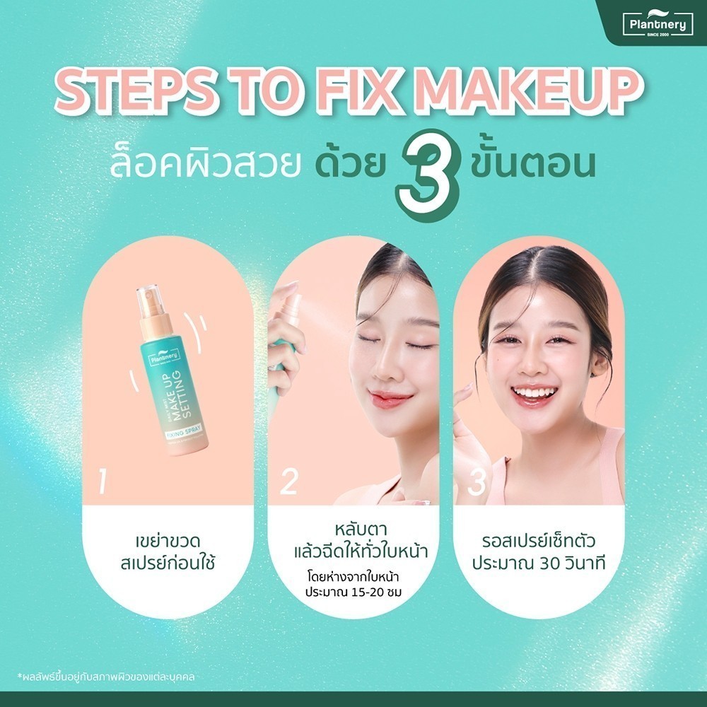 ... งซื้อ (เทียบกับเรทค่าส่งแต่ละขนส่ง) 💬 รายละเอียดสินค้า 💬 (ขวดสเปรย์) Plantnery Daily Setting Mist Fixing Spray แพลนท์เนอรี่ เดย์ลี่ เซ็ทติ้ง สเปรย์ 60 มล. ล็อคหน้าเป๊ะ ไม่หลุด ด้วยสเปรย์ล็อคเมคอัพที่มาพร้อมเทคโนโลยี Film-Lock+ Technology ขั้นสูง ที่สามารถช่วยเคลือบผิว ล็อกเมคอัพให้ติดทนนาน ผิวแมทต์ไม่มัน ไม่เป็นคราบ กันน้ำ กันเหงื่อ พร้อมปกป้องผิวจากฝุ่นละออง 2in1 บำรุง พร้อมล็อคเครื่องสำอาง ผิวแมทต์ไม่มันในฉีดเดียว ผสานการบำรุงเติมความชุ่มชื้นกับผิวด้วยน้ำแร่จากดอกกุหลาบออร์แกนิค ประเทศบัลแกเรีย อุดมไปด้วย วิตามิน แร่ธาตุที่จำเป็นต่อผิว พร้อมเติมสกินแคร์ให้ผิวด้วยสารสกัดธรรมชาติจากดอกคาโมมายล์ ใบบัวบก แตงกวา และไฮยาลูรอนิค เติมความชุ่มชื้น พร้อมล็อคเมคอัพแล้วบำรุงผิวไปพร้อมกัน หัวสเปรย์ละอองละเอียด เนื้อสัมผัสบางเบา พร้อมสร้างฟิล์มโปร่งแสง สูตรปราศจากแอลกอฮอล์ พาราเบน ทำให้ไม่แสบตา ไม่ทิ้งความเหนียวบนผิวหลังใช้งาน ใช้ได้กับทุกสภาพผิว ไม่รบกวนเครื่องสำอาง ให้ผิวสวยอยู่นาน เติมความชุ่มชื้นไม่ให้หน้าแห้งระหว่างวัน ให้ผิวฉ่ำสวยเป๊ะ เทคนิคพิเศษ ผิวสวย X3 เพื่อผลลัพธ์ที่ดีที่สุดของการใช้งาน สามารถใช้ได้ทั้งก่อนแต่งหน้า ระหว่างแต่งหน้า และหลังแต่งหน้า ปราศจากสารที่อาจจะก่อการระคายเคือง 5 Free ALCOHOL FREE | PARABEN FREE | SILICONE FREE | MINERAL OIL FREE | COLOURANT FREE วิธีใช้ เขย่าขวดสเปรย์ก่อนใช้ หลับตาแล้วฉีดให้ทั่วใบหน้า และขณะฉีดถือให้ห่างจากใบหน้าประมาณ 8-10 นิ้ว