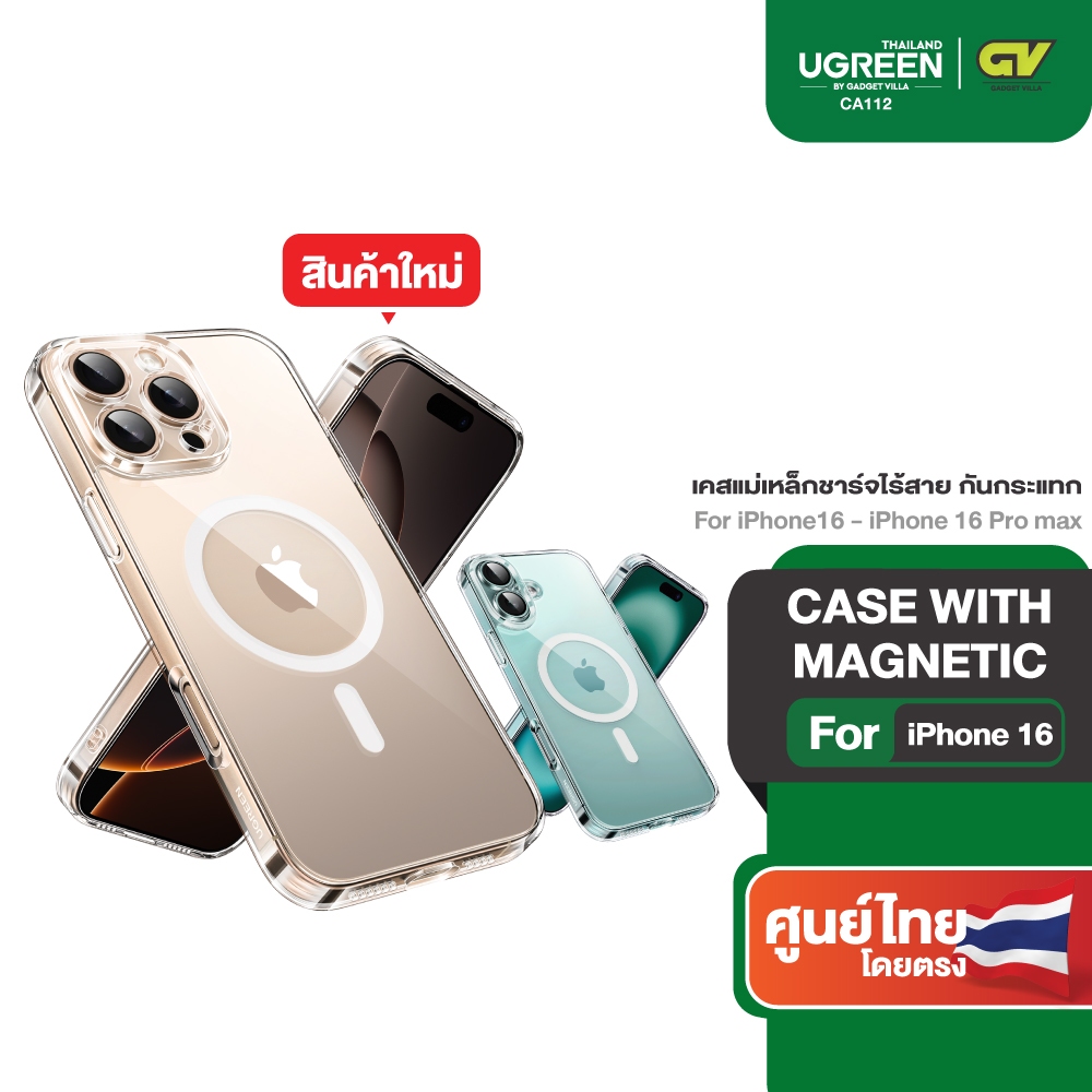 ... ต้องรอนาน และยังให้บริการได้ถึง 3 ภาษาหลัก ไทย / อังกฤษ / จีน 4. รับประกันคุณภาพสินค้า เสียเปลี่ยนตัวใหม่ ในระยะเวลาสูงสุด 2 ปี 5. การันตีของแท้ 100% Gadget Villa เป็นตัวแทนจำหน่ายอย่างเป็นทางการ มีใบอนุญาต ที่ออกให้โดย Ugreen Head Office (สำนักงานต่างประเทศ) ========================= โปรดอ่านก่อนสั่งซื้อ 📍การขอใบกำกับภาษี ->> ทางร้านมี Google Form ให้ลูกค้ากรอกข้อมูล โดยลิ้ง Google Form อยู่ในข้อความตอบกลับอัตโนมัติ(ทักแชท) แนะนำคุณลูกค้ากรอกฟอร์มทันทีหลังชำระเงิน ======================================================= UGREEN เคสแม่เหล็กชาร์จไร้สาย กันกระแทก แบบใส มีป้องกันเคสเหลือง รุ่น CA112 📌📌จุดเด่นสินค้า📌📌 1.ดีไซน์บางเบาและกันลื่น : เคสมีความบางเพียง 0.15 ซม. จับถนัดมือ น้ำหนักเบา พกพาสะดวก พร้อมกันลื่นขณะใช้งาน 2.เทคโนโลยี iCrystal ปี 2024 : ช่วยให้เคสดูใส คงความสวยงามของโทรศัพท์ได้นานด้วยการเคลือบกันออกซิเดชัน ป้องกันการเหลืองนานถึง 6 เดือน 3.พลังแม่เหล็กสองเท่า : ด้วยเทคโนโลยี UGREEN Halbach เพิ่มแรงดูดของแม่เหล็กถึง 1427 กรัมฟอร์ซ มากกว่าแม่เหล็กรุ่นอื่น ๆ ในตลาดถึง 200% 4.การป้องกันการตกกระแทกระดับ Military Grade : รองรับการตกจากความสูงถึง 2 เมตร และผ่านการทดสอบการตกอย่างต่อเนื่องกว่า 4500 ครั้ง โดยไม่มีความเสียหาย 5.ปุ่มกล้องตอบสนองไว : รูปทรงปุ่มและช่องกล้องถูกออกแบบมาให้เข้ากับ iP 16 Series อย่างแม่นยำ ใช้งานได้ลื่นไหล 6.ขอบยกสูง 360 องศา : ขอบเคสยกสูง 0.65 มม. สำหรับหน้าจอ และ 0.9 มม. สำหรับกล้อง ช่วยปกป้องหน้าจอและเลนส์จากการขีดข่วนได้รอบทิศทาง 7.รองรับการชาร์จไร้สาย 15W : รองรับการชาร์จแบบ MagSafe 15W อย่างเต็มประสิทธิภาพ ทำให้การชาร์จรวดเร็ว ปลอดภัย และเสถียร 8.วัสดุคุณภาพสูง : เคสประกอบด้วยขอบ TPU ยืดหยุ่น และด้านหลังเป็นพลาสติก PC แข็งแรง ทนทาน ปกป้องโทรศัพท์จากการกระแทกและรอยขีดข่วน 📌📌อุปกรณ์ที่รองรับการใช้งาน 📌📌 ● โทรศัพท์ 📌📌สเปคสินค้า📌📌 ยี่ห้อ Ugreen รุ่น CA112 วัสดุเคส: TPU 📌📌อุปกรณ์ภายในกล่อง📌📌 UGREEN เคสแม่เหล็กชาร์จไร้สาย กันกระแทก แบบใส มีป้องกันเคสเหลือง รุ่น CA112 --------------------------------------------- ⚠︎ ขอสงวนสิทธิ์ในการขอยกเลิก ถ้าเลยกำหนดส่งของ SHOPEE เท่านั้น ⚠︎ 📦👍 รับประกัน 2 ปี เสียเปลี่ยนใหม่ 📍📍 ฝากกดติดตามร้านค้า กดlike 👍 เพื่อรู้ โปรโมชั่นต่างๆ และ สินค้ามาใหม่ 📍📍 --------------------------------------------- 📃 ทางร้านออกใบกำกับภาษีเต็มรูปแบบได้ (รบกวนลูกค้าแจ้งทางแชทร้าน) 🇹🇭 🚛 เวลาตัดรอบ สั่งสินค้าวัน จันทร์(ก่อนเที่ยง) , อังคาร-ศุกร์( ก่อน 15.00 ), เสาร์(ก่อนเที่ยง) จัดส่งสินค้าภายในวันที่สั่งซื้อ 🚚 สั่งสินค้าหลังจากเวลาตัดรอบและวันอาทิตย์ จัดส่งสินค้าวันถัดไป ✅ สินค้ามีรับประกันเปลี่ยนตัวใหม่ถ้าเสียภายใน 1 - 2 