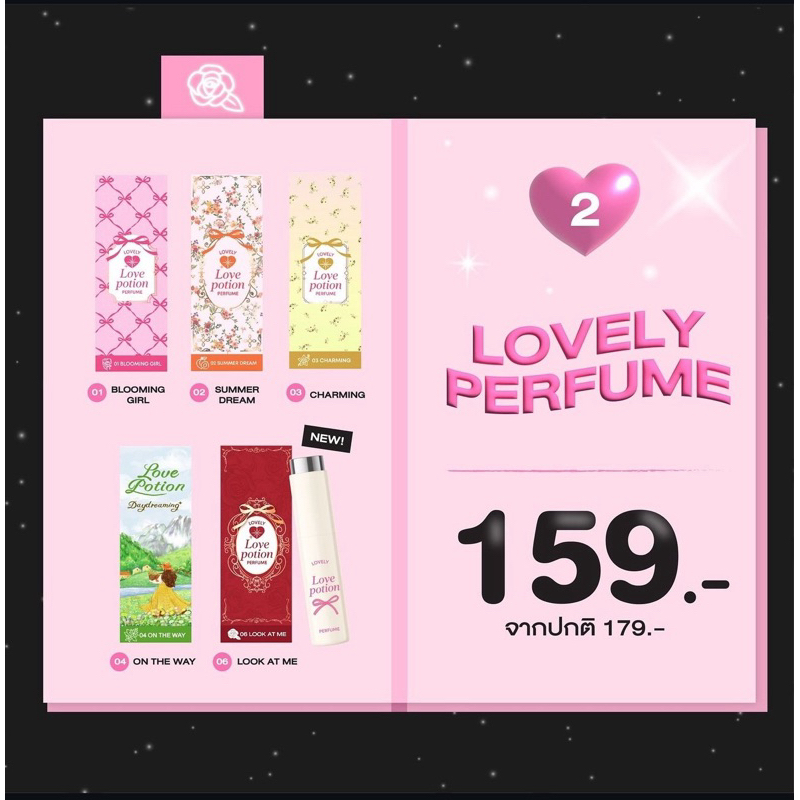 น้ำหอม lovepotion มีปลายทาง มี 3 กลิ่น 01 blooming 02 summer 03 Charming
