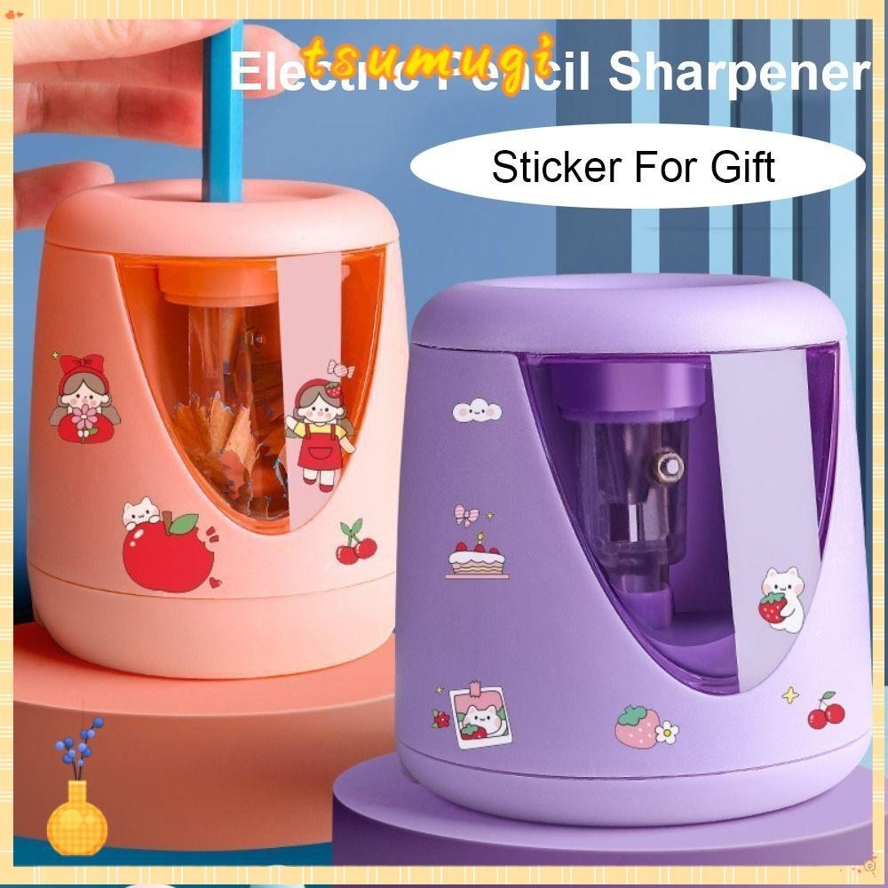 Tsumugi เครื่องเหลาดินสอไฟฟ้าของขวัญพร้อมสติ๊กเกอร์ตกแต่งอุปกรณ์สํานักงานโรงเรียนแบตเตอรี่/USB/Charging Creative Stationery