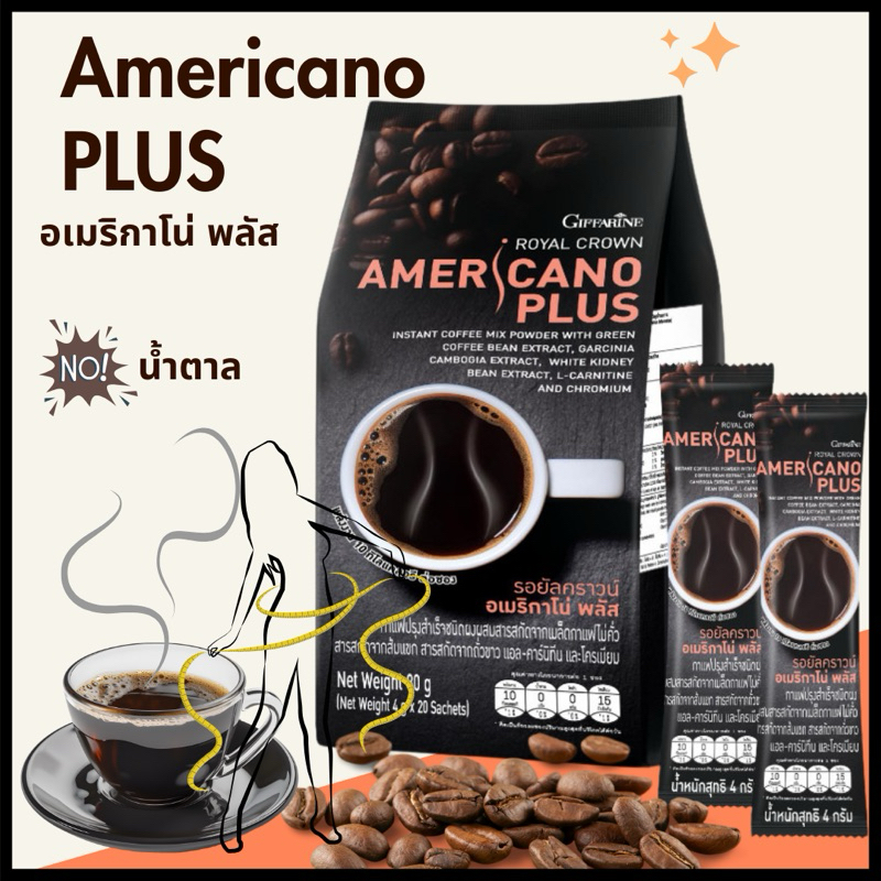 กาแฟดำ หุ่นสวย กิฟฟารีน รอยัลคราวน์ อเมริกาโน่ พลัส สารสกัดจากเมล็ดกาแฟไม่คั่ว (4 กรัม x 20 ซอง)
