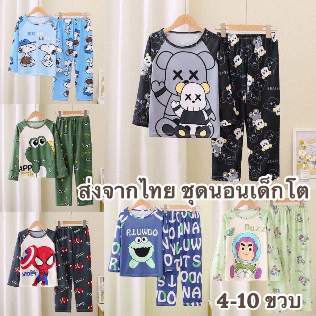 💥ส่งจากไทย💥 ชุดนอนเด็กแขนยาว ขายาว CK172 ผ้านิ่ม ไซส์ 4-10 ขวบ