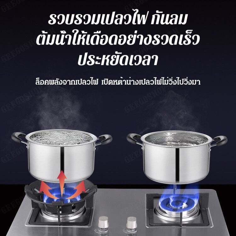 ฝาครอบเตาแก๊ส ดีไซน์กันลมและเน้นไฟ โครงหม้อมั่นคงและหม้อกันลื่น ทำอาหารได้เร็วและประหยัดน้ำมันมากขึ้น เหมาะสำหรับขา3/4/5