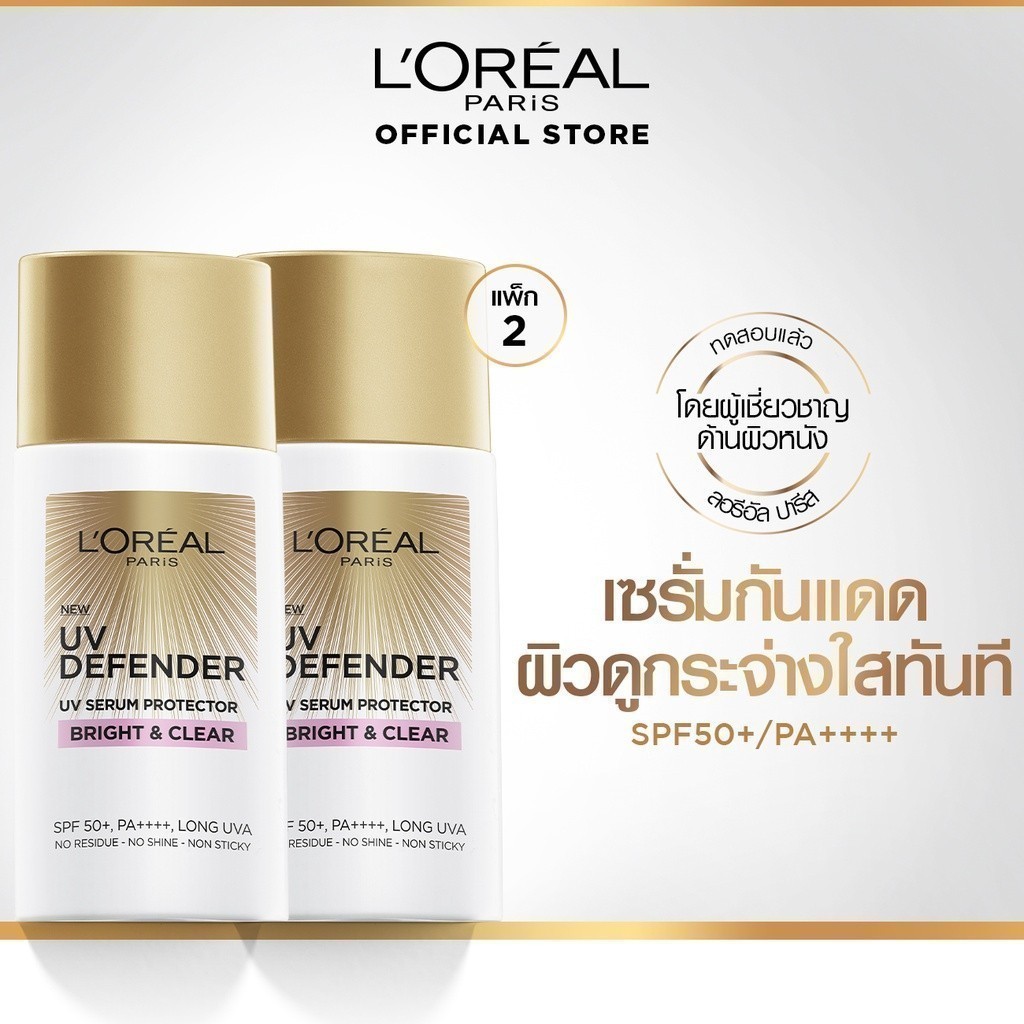 [แพ็กคู่] ลอรีอัล ปารีส ยูวี ดีเฟนเดอร์ เอสพีเอฟ 50+ พีเอ++++ ลอง ยูวีเอ 50 มล. x2 (ครีมกันแดด, กันแดดคุมมัน)