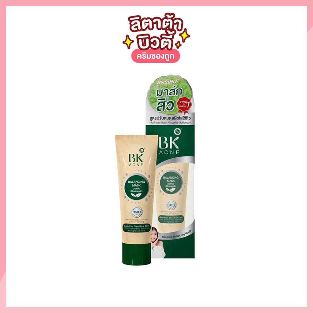 [ 1 หลอด ] บีเค เอคเน่ บาลานซิ่ง มาส์ก BK ACNE BALANCING MASK 35 กรัม มาส์กสิวสูตรปรับสมดุลผิวใสไร้สิว