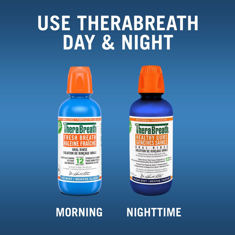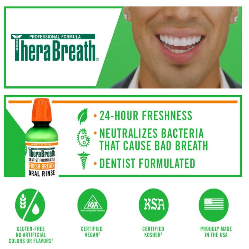ของแท้นำเข้า🇺🇸 TheraBreath น้ำยาบ้วนปาก สูตรปราศจากแอลกอฮอล์ 12-Hour Fresh Breath Oral Rinse, Mild Mint, 16.0 fl oz