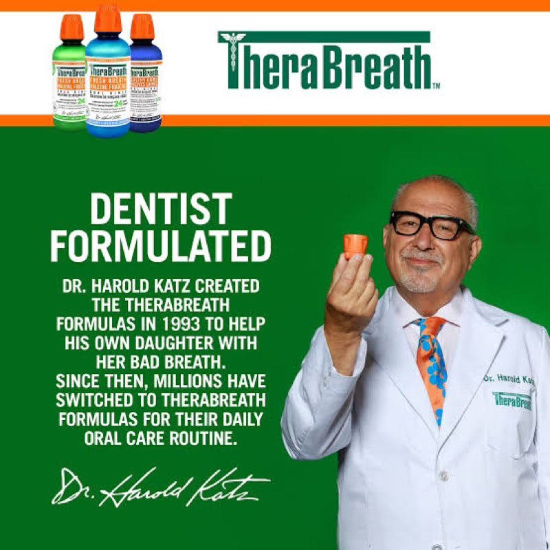 ... เริ่มต้น สีเขียวเข้ม รส Rainforest Mint - มีกลิ่นป่าสน ไม่เป็นกรดและมีค่าPHสมดุล ลมหายใจสดชื่น ปากสะอาด และช่วยดูแลลำคอ ฆ่าแบคทีเรียที่ก่อให้เกิดกลิ่น รักษาเหงือก สีฟ้า รส Icy Mint - มีกลิ่นมิ้นต์เย็นสดชื่น ให้ความรู้สึกเล็กน้อยไม่แสบปาก ใช้สารให้ความหวานไซลิทอล ที่มีส่วนช่วยปกป้องฟันผุร่วมด้วย ฆ่าแบคทีเรียที่ก่อให้เกิดกลิ่น ทำให้ลมหายใจสะอาด สดชื่น สีชมพู รส Sparkle Mint - มีรสมิ้นต์เบาๆมีความหวานนิดๆ มีส่วนผสมของฟลูออไรด์และไซลิทอล ช่วยป้องกันฟันผุ เสริมสร้างฟัน และเคลือบฟัน ช่วยให้ฟันแข็งแรง ลมหายใจสดชื่นได้อย่างยาวนาน นำเข้า🇺🇸 TheraBreath น้ำยาบ้วนปาก สูตรปราศจากแอลกอฮอล์ ได้รับ 24-Hour Fresh Breath Oral Rinse, Mild Mint, 16.0 fl oz น้ำยา TheraBreath มีสารที่มีประสิทธิภาพเพื่อช่วยหยุดกลิ่นปาก (ปาก) ผลิตภัณฑ์น้ำยาบ้วนปากที่ให้ออกซิเจน เพื่อต่อสู้กับกลิ่นปาก ระดับที่เฉพาะเจาะจงได้เพื่อให้ลมหายใจสดชื่นตลอดวัน น้ำยาบ้วนปากสูตรพิเศษสำหรับเด็ก freshens ลมหายใจและช่วยป้องกันฟันผุในขณะที่บ้วนปาก ส่งเสริมสุขภาพเหงือก, ฟันขาว, บรรเทาอาการเสียวฟันและต่อสู้ปากแห้ง ส่วนผสม น้ำ (Aqua), น้ำมันละหุ่งไฮโดรเจน PEG-40, โซเดียมคลอไรท์, Tetrasodium EDTA, โซเดียมเบนโซเอต, โซเดียมไบคาร์บอเนต, น้ำมัน Mentha Piperita (เปปเปอร์มินต์), โซเดียมไฮดรอกไซด์ · น้ำยาบ้วนปากที่มียอดขายอันดับ 1 ในอเมริกา · ปกป้องและระงับกลิ่นปาก ตั้งแต่ครั้งแรกที่ใช้ · ช่วยเพิ่มออกซิเจนในช่องปากเพื่อยับยั้งแบคทีเรียที่ก่อให้เกิดกลิ่นปาก · ปราศจากแอลกอฮอล์ และกลูเตน ไม่แสบปาก · มีผลิตด้วยส่วนผสมที่ได้มาจากธรรมชาติไม่แต่งสี · TheraBreath Mild Mint สีเขียว สูตร ต้นตำรับ มีกลิ่นมิ้นท์อ่อนๆ Description Bad breath is nothing to be ashamed of...everyone gets it! ADA accepted TheraBreath Fresh Breath Mouthwash has been fighting bad breath for over 25 years. When used as directed, it's clinically shown to fight bad breath for 24 hours when used every 12 hours after brushing and flossing. This alcohol-free mouthwash doesn't burn or irritate, and the oxygenating compound that fights bad breath starts working instantly. TheraBreath Fresh Breath Mouthwash has no artificial dyes and is certified kosher, vegan, and gluten-free. We’re so confident in the effectiveness of TheraBreath Oral Rinses that we back them up with our 100% guarantee. If you haven’t seen improvement in your breath, contact us within 30 days of purchase for a full refund. TheraBreath: It's a better mouthwash, satisfaction 100% guaranteed! Features & details FIGHTS BAD BREATH: TheraBreath Fresh Breath Mouthwash fights bad breath for 24 hours when used every 12 hours after brushing and flossing DENTIST FORMULATED: Dr. Katz created the TheraBreath formulas in 1993 to help his own daughter with her bad breath ADA ACCEPTED: Our alcohol-free, non-burning formula is powered by oxygen, and is ADA accepted to help reduce bad breath RESTORE CONFIDENCE: TheraBreath believes you should define success any way you please. We exist to motivate you to go get it. IT'S A BETTER MOUTHWASH: Try the fastest growing mouthwash brand in the USA