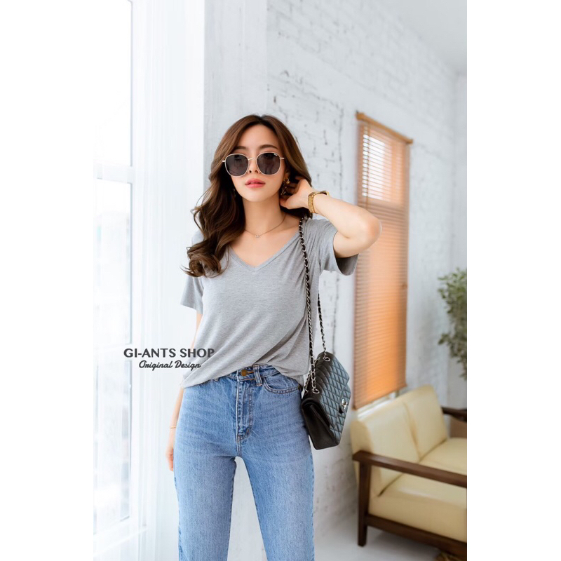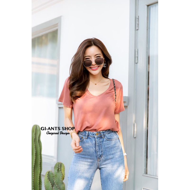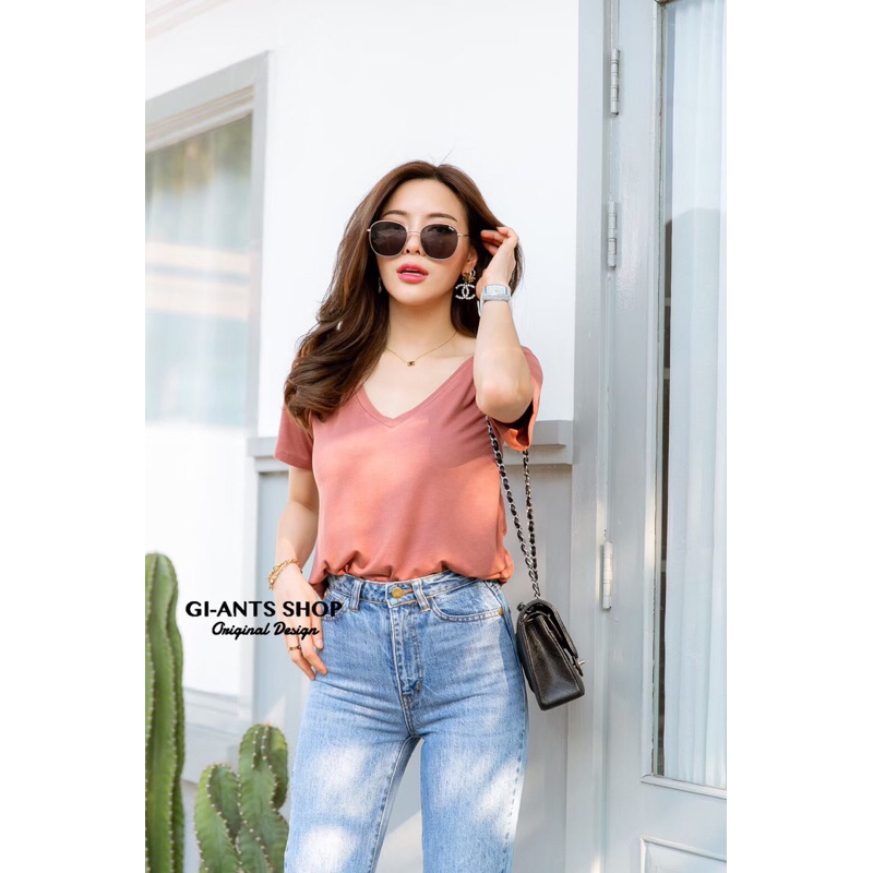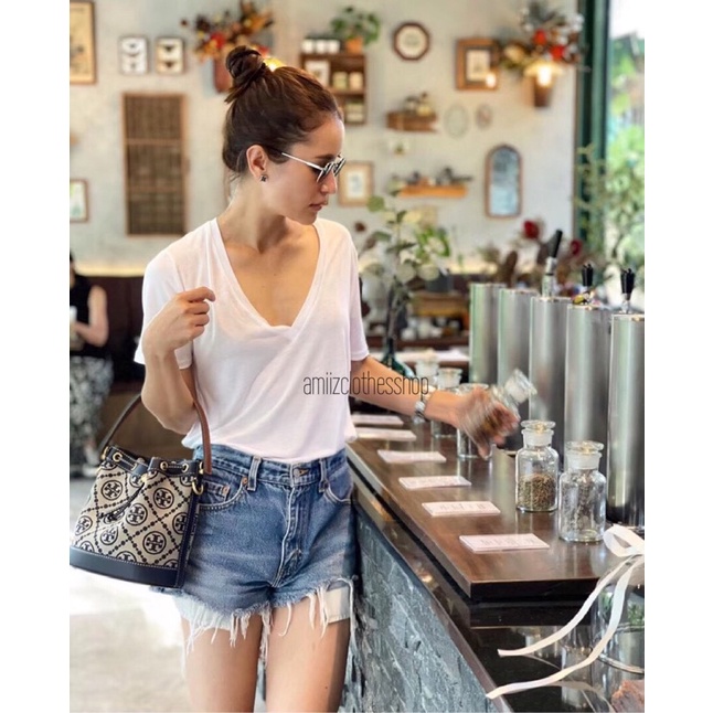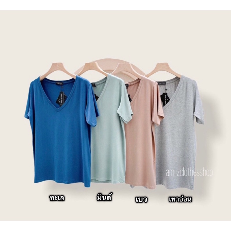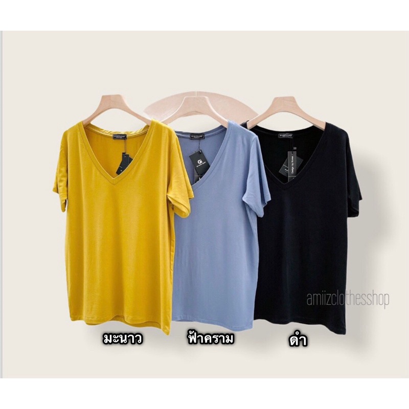เสื้อยืดคอวีโอเวอร์ไซด์ style zara เสื้อแฟชั่นผู้หญิง(โรงงานไทย)