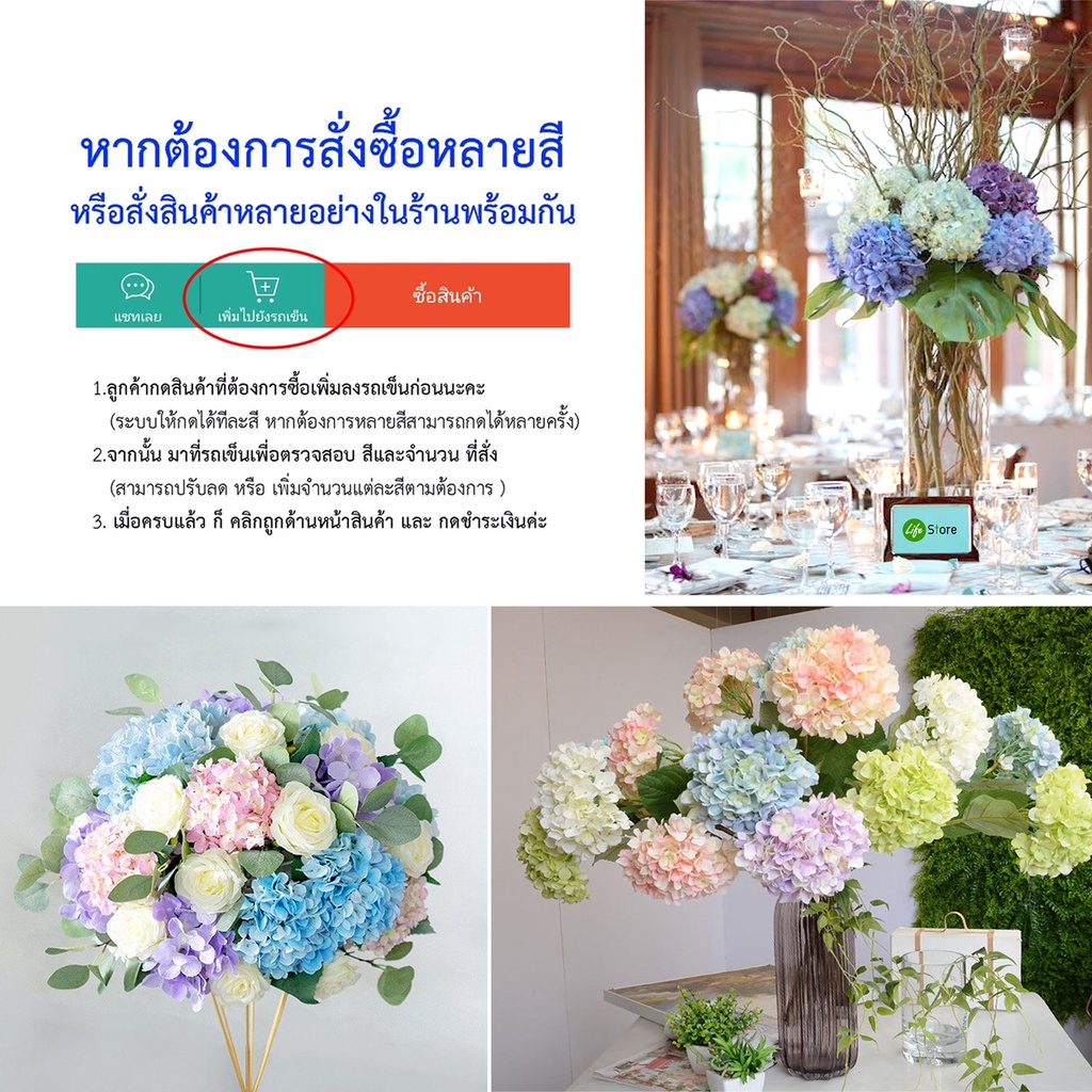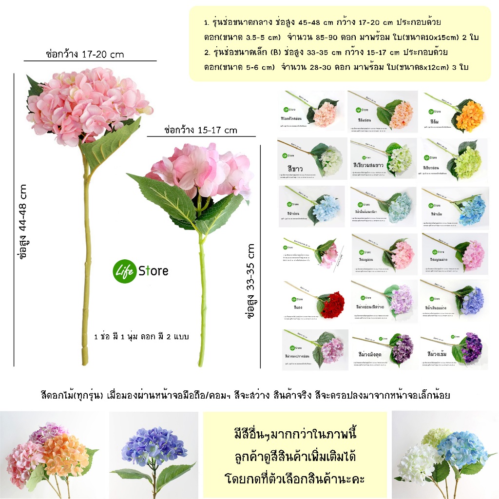 ... าคาต่างกันเนื่องจาก บางสีไม่มีขายทั่วไป ทางร้านสั่งผู้ผลิตพิเศษ ต้นทุนจึงสูงกว่าสีอื่นๆ ราคาสินค้าจึงต่างกันเล็กน้อย(3-5บ.)นะคะ** ❤️ไฮเดรนเยียดอกไม้ประดิษฐ์จากผ้าไหม 1ช่อ มีดอก1พุ่ม + ใบ 2ใบ ช่อยาว 45 - 48 cm กว้าง 14-25 cm (ไซส์กลางใหญ่ ) ส่วนก้านจะเป็นลวดหุ้มพลาสติกแต่งก้านเลียนแบบธรรมชาติ ส่วนดอกทำจากผ้าไหม สวยงาม ดูหรู ดูแพง สีไม่ตก ใช้งานได้ยาวนาน(หลายปี) คุ้มค่าคุ้มราคามากๆ ❤️ ไฮเดรนเยียร์มีหลายสายพันธุ์(กลีบจะคล้ายๆกัน) รุ่นนี้ มีกลีบดอก 2-3 แบบ ช่อสูง 33-47cm กว้าง 15-20 cm ดังรายละเอียดที่ลงไว้ในภาพแต่ละตัวเลือกสี นะคะ สินค้าราคาต่อ 1 ชิ้น ** หากต้องการจัดในแจกันลงตัว เลือกกลีบแบบเดียวกันในแจกันเดียวกันนะคะ ** หรือหากต้องการจัดแบบผสมผสาน กลีบดอก 2-3 แบบก็ประยุกต์ ได้ตามต้องการ ✅ ภาพในตัวเลือกสินค้า ภาพบน(ภาพใหญ่ที่เป็นดอกเดี่ยว) ถ่ายจากสินค้าจริง / ส่วนภาพล่าง (ภาพเล็ก ในแจกันต่างๆ) เป็นภาพประกอบไอเดียการตกแต่งแนวต่างๆของสีนั้นๆ ** ลูกค้าดูภาพสินค้าจริงจากภาพบนนะคะ ภาพบน(ก้านเดี่ยว) แต่ละสีถ่ายจากสินค้าจริงในร้านค่ะ *** ✅ ค่าส่งเริ่มต้น 45บ. หากสั่ง 8-9 ช่อ ค่าส่งก็ไม่เพิ่มค่ะยังคง 45บ.เท่าเดิม (เฉลี่ยต่อช่อค่าส่งจะถูกลง) หากสั่งจำนวนมากขึ้นค่าส่งจะเพิ่มเล็กน้อยตามน้ำหนักแต่โดยเฉลี่ยต่อชิ้นจะถูกลงไปอีกค่ะ ทางร้านเข้าร่วมโปรส่งฟรี ลูกค้าสามารถกดรับคูปองหน้าเวบแล้วสั่งซื้อหากยอดซื้อถึง 99บ. และกดรับคูปองหน้าเวบแล้วจะได้รับส่วนลดค่าส่ง 40บ ค่ะ ❤️ เพิ่มสีสันให้บ้าน สดชื่น สดใหม่ สดใส มีสไตล์ เพิ่มความสง่างามในบ้าน หรือตกแต่งรอบบ้านได้ กรณีตกแต่งนอกสถานที่ก็สามารถนำกลับมาใช้ใหม่ได้หลายครั้ง สีไม่ซีดเร็ว ดูสดชื่นสดใหม่ สารพัดประโยชน์มากๆ ❤️ดอกไม้แห้ง สำหรับตกแต่งบ้าน / สำนักงาน จัดสวน ใส่กระเช้า กระถาง หรือใส่แจกัน หรือจัดช่อสวยๆมอบให้คนพิเศษในโอกาสต่างๆ สามารถประยุกต์ ตกแต่งประดับซุ้มดอกไม้งานสำคัญต่างๆเช่น งานแต่งงาน พรีเวดดิ้ง นิทรรศการ ปาร์ตี้ หรืองานต่างๆ หรือเป็นพร็อพถ่ายรูป #HYDRANGEA #FLOWER #ไฮเดรนเยีย #ดอกไม้ประดิษฐ์ #ดอกไม้แห้ง #แจกันดอกไม้ #ดอกไม้ประดับ #ดอกไม้ปลอม #ดอกไม้ #ไอเดียแต่งห้อง #ดอกไม้วินเทจ #ดอกไม้ตกแต่งบ้าน #พร๊อพถ่ายรูป #ดอกไม้จากผ้าไหม #ดอกไฮเดรนเยีย #ดอกไม้คุณภาพดี #ดอกไม้ปลอมตกแต่ง #ซุ้มดอกไม้ #ตกแต่งบ้าน #แต่งห้องนอน #ห้องอาหาร #ห้องรับแขก #ออฟฟิศ #ห้องทำงาน #ตกแต่งสำนักงาน #ช่อดอกไม้ #ดอกไม้รับปริญญา #ดอกไม้แสดงความยินดี #ดอกไฮเดรนเยียร์ #ไฮเดรนเยียร์ #ไฮเดรนเยียปลอม #ไฮเดรนเยียร์ปลอม #ไฮเดรนเยียร์ผ้าไหม #ดอกไม้ผ้า