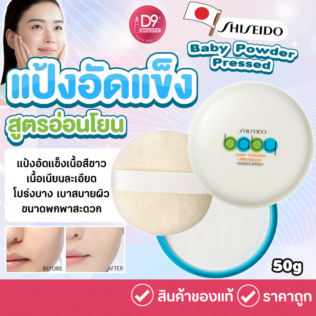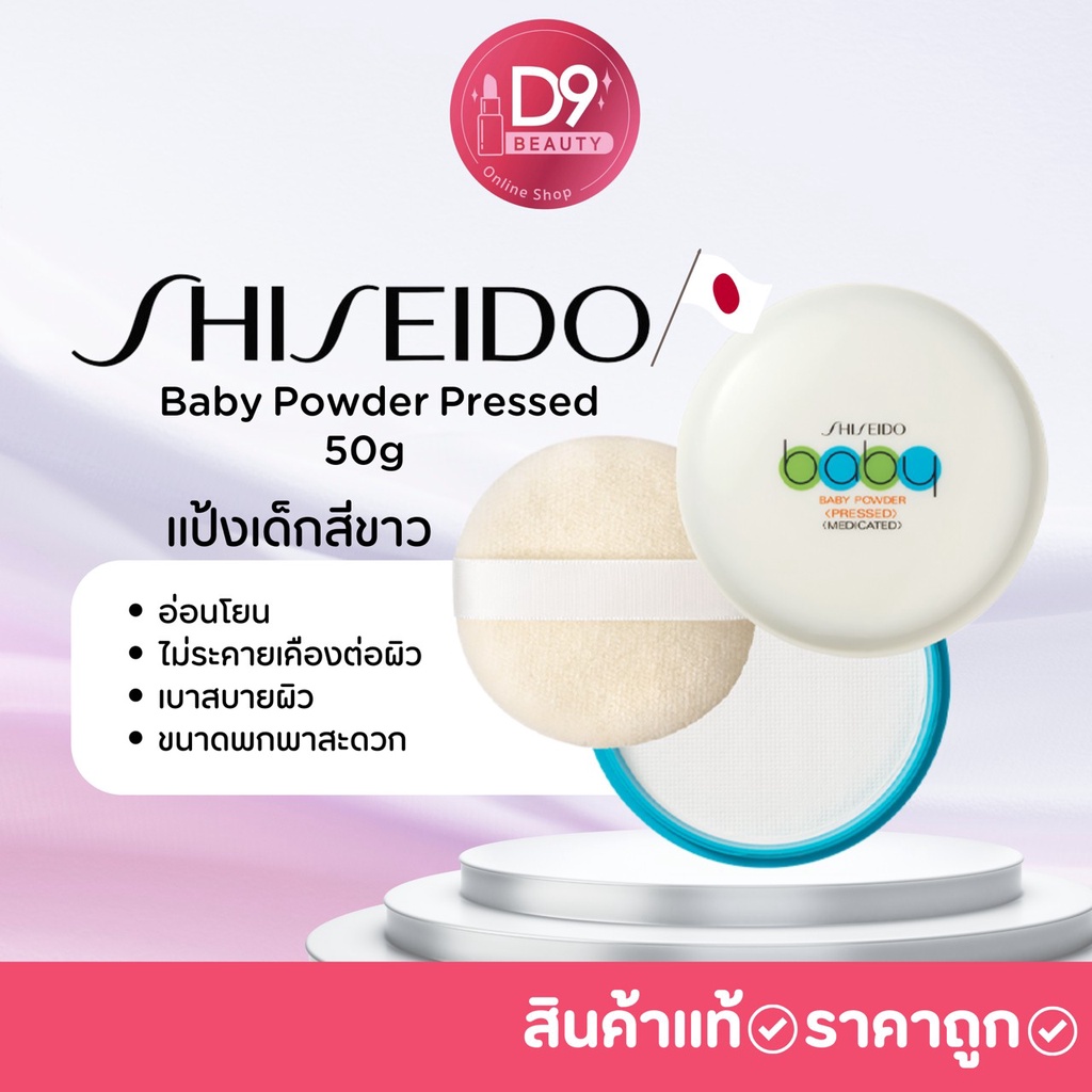 Shiseido แป้งเด็ก Baby Powder Pressed 50g. ของแท้จากญี่ปุ่นค่า สูตรอ่อนโยน ไม่ระคายเคืองต่อผิว แม้ผิวบอบบาง แพ้ง่าย แป้งอัดแข็งเนื้อสีขาวเนื้อเนียนละเอียดและโปร่งบาง มอบความเนียนสวยใสอย่างเป็นธรรมชาติ และเบาสะบายผิว ขนาดพกพาสะดวก #แป้ง #บำรุงผิวหน้า #เครื่องสำอาง #แป้งshiseido #shiseido #