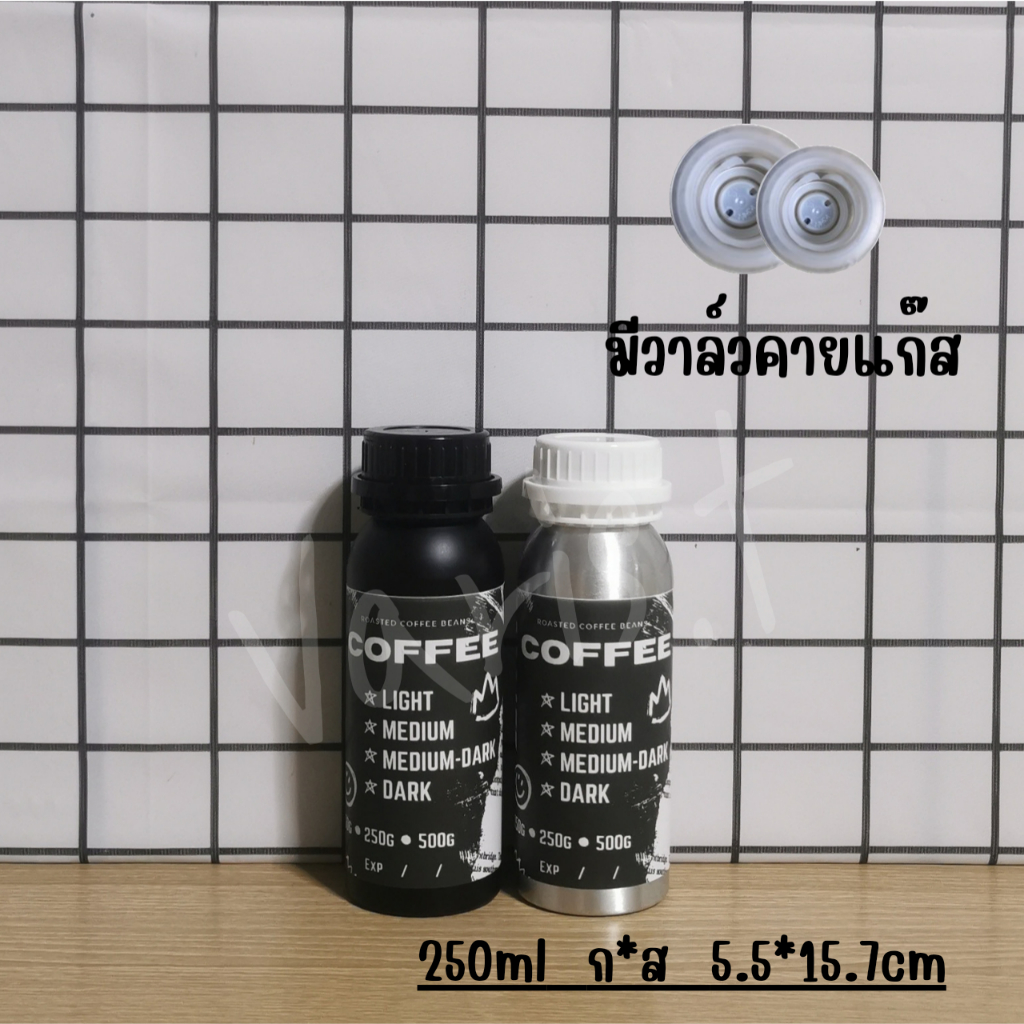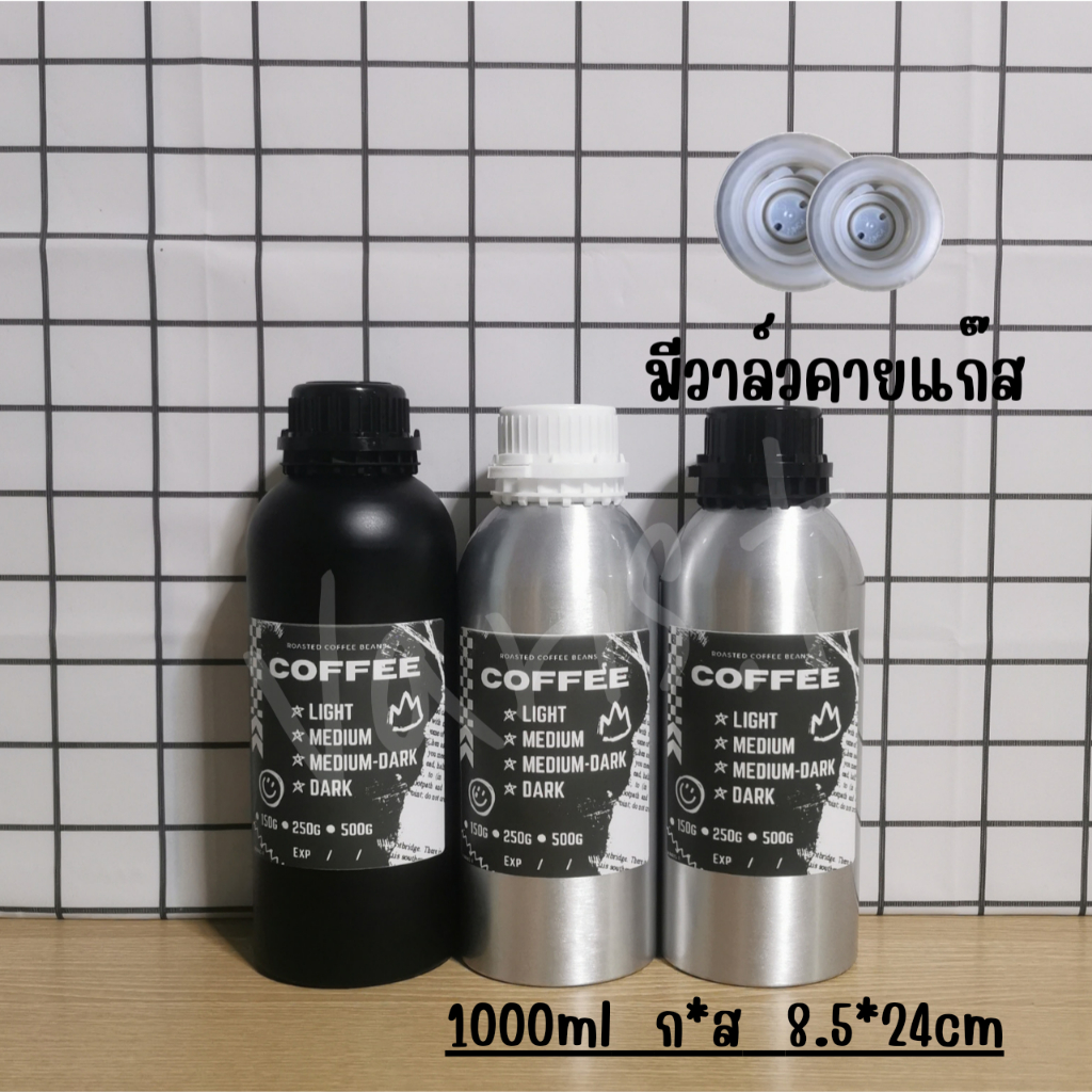 ขวดใส่เมล็ดกาแฟ 💥มีวาล์วคายแก๊ส💥 ขวดอลูมิเนียมใส่เมล็ดกาแฟ แถมฟรีสติ๊กเกอร์ !!