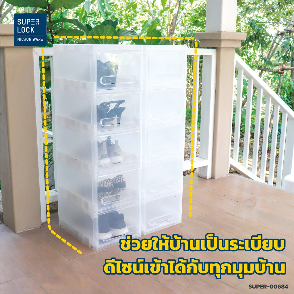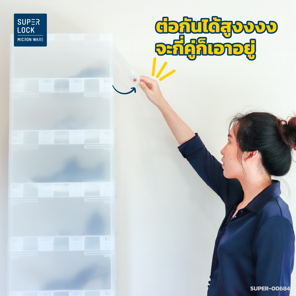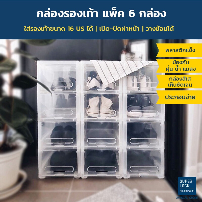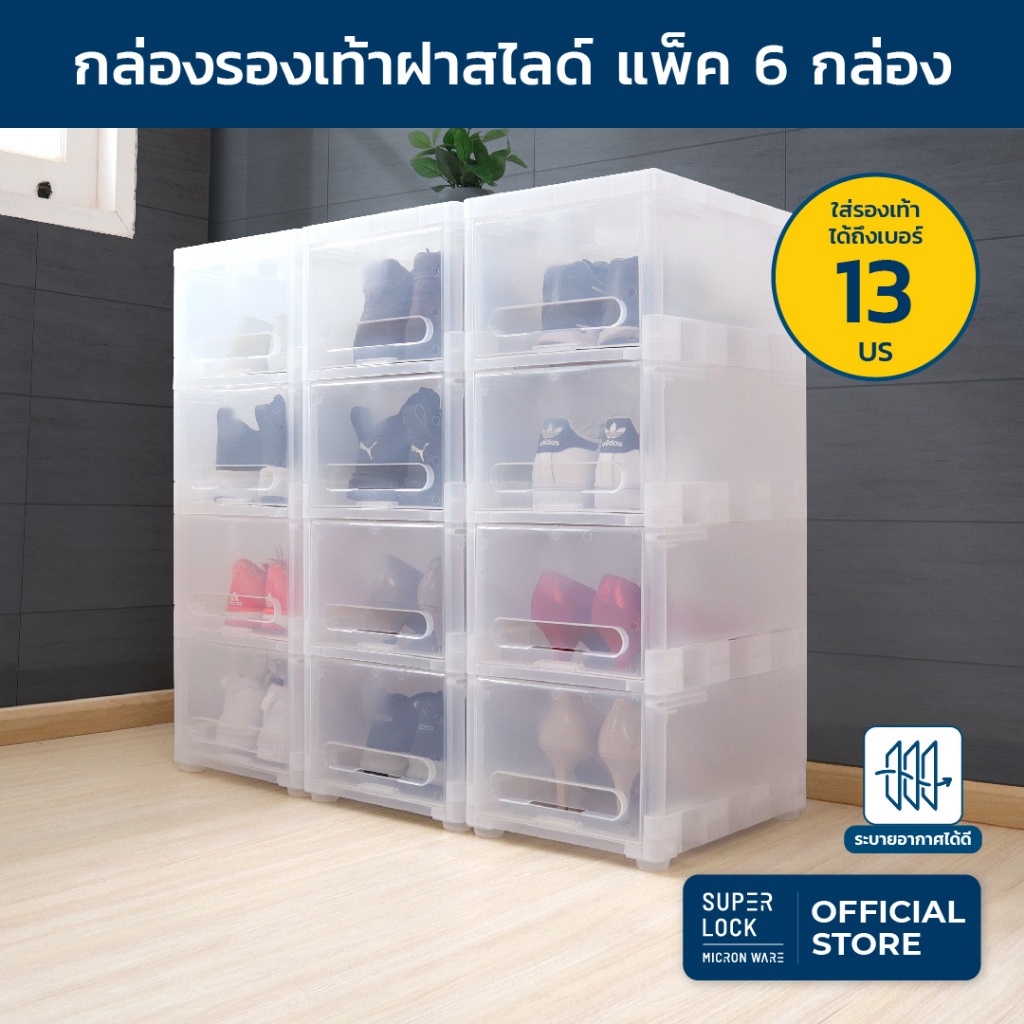 Super Lock กล่องรองเท้า แพ็ก 6 กล่อง รุ่น Super Box 5660 พลาสติกแข็ง เปิดฝาหน้า ใส่รองเท้าได้ทุกขนาด สีใส
