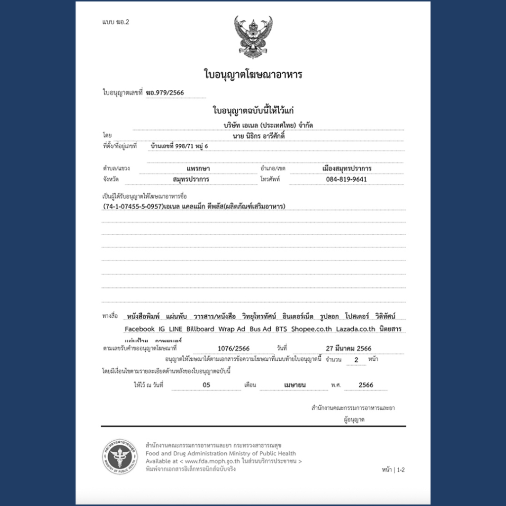 ... Acid Chelate (20%) 265 มก. 3.กรดอะมิโน L-Lysine (100%) 25 มก. 4.กรดอะมิโน L-Alanine 25 มก. 5.กรดอะมิโน L-Leucine (100%) 25 มก. 6.กรดอะมิโน L-Arginine (100%) 25 มก. 7.กรดอะมิโน L-Glutamine (100%) 25 มก 8.Boron Amino Acid Chelate (5%) 15 มก. 9.Manganese Amino Acid Chelate (10%) 15 มก. 10.Black Sesame Extract 10 มก. 11.Soy Bean Extract 10 มก. 12.vitamin D3 2 มก.(200IU) อย. 74-1-07455-5-0957 เลขที่ใบอนุญาตโฆษณา ฆอ.979/2566 กอท.ฮล. 10 R042 001 05 66 ผ่านการตรวจ GMO Testing จากห้องปฏิบัติการ ดีเอ็นเอ เทคโนโลยี มหาวิทยาลัยเกษตรศาสตร์ ได้รับ DMSc Bureau of Laboratory Quality Standards Ministry of Public Health ได้รับ GMP (Good Manufacturing Practice) ได้รับ GHPs (Good Hygiene Practices) ได้รับ HACCP (Hazard Analysis and Critical Control Point System) ได้รับ ISO 14001:2005 ได้รับ ISO 22000 ได้รับรางวัล “ชีวจิต Awards 2022” สาขา Innovation Reader’s vote วิธีรับประทาน รับประทานครั้งละ 1 เม็ด วันละ 1-2 ครั้ง หลังอาหาร *อ่านเอกสารวิธีทานประกอบ ในเอกสารแนะนำวิธีทานที่จัดส่งให้พร้อมสินค้า *โปรดศึกษาข้อมูลก่อนรับประทาน ไม่มีผลในการป้องกันหรือรักษาโรค วิธีการเก็บรักษา เพื่อคงคุณภาพผลิตภัณฑ์สูงสุดหากแกะผลิตภัณฑ์ออกจากซองอลูมิเนียมแล้ว ควรทานให้หมดภายใน 2 - 3 เดือน (ผลิตภัณฑ์เสริมอาหารควรทานต่อเนื่องเพื่อประสิทธิภาพอยู่แล้ว) และเก็บแผงผลิตภัณฑ์ไว้ในกล่องที่มีซอง silica gel ดูดความชื้นเสมอ หลีกเลี่ยงจากแสงแดด ความชื้น เนื่องจากผลิตภัณฑ์เอเนล มีสารสกัดจากธรรมชาติหลายชนิด ยืนยันจากผู้ทานจริง มากกว่า 95% พึงพอใจมาตลอด 5 ปี
