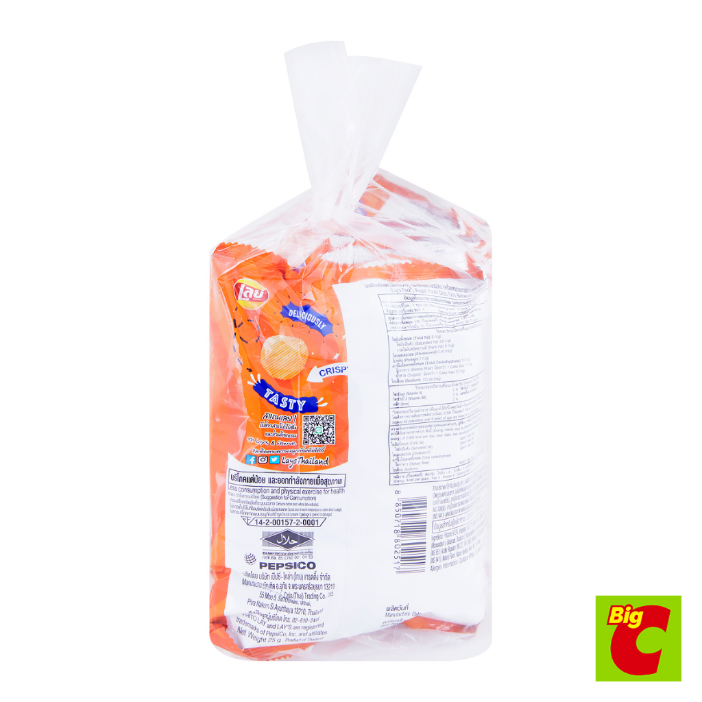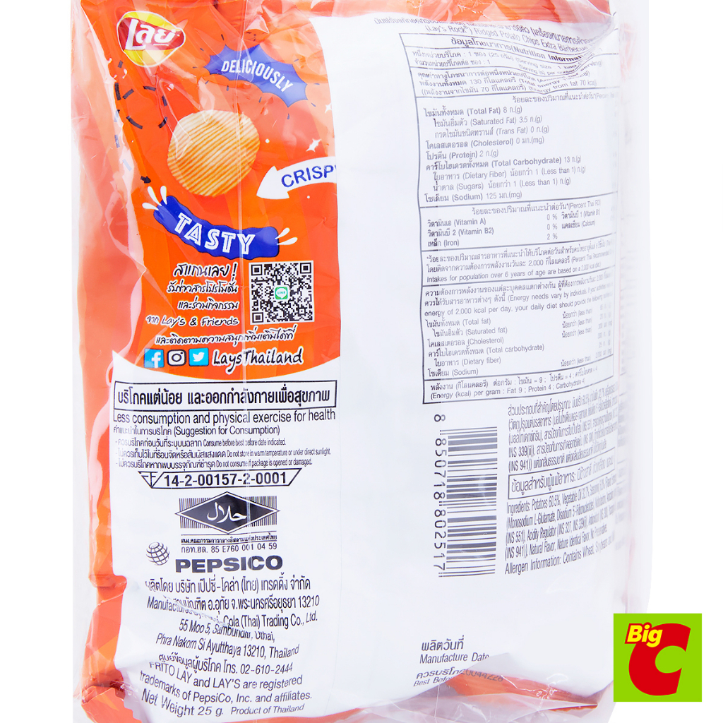 ... สนุก ให้เต็มที่สำหรับคุณและทุกๆ คน - เลย์ ร็อค มันฝรั่งแท้ทอดกรอบแผ่นหยัก กลิ่นเอ็กซ์ตร้า บาร์บีคิว - ผลิตจากมันฝรั่งคุณภาพเยี่ยม คัดพิเศษ เพื่อคุณเท่านั้น - อร่อยเต็มคำ แผ่นใหญ่ ด้วยแผ่นหยัก เคี้ยวเพลิน - ส่วนผสมรสชาติบาร์บีคิว คลุกเคล้าเข้ากันกับมันฝรั่ง รู้สึกได้ถึงรสชาติบาร์บีคิวจากเตาย่าง - สามารถรับประทานได้ทุกที่ทุกเวลา ใช้รับประทานเป็นของว่างในเวลาสังสรรค์ ช่วงวันหยุด รับประทานกับเพื่อนหรือครอบครัว สินค้าที่ได้รับอาจมีการปรับเปลี่ยนแพ็คเกจและปริมาณจากผู้ผลิต ขออนุญาตสงวนสิทธิ์ในเปลี่ยนแปลงดังกล่าว โดยไม่แจ้งให้ทราบล่วงหน้า *ภาพประกอบใช้เพื่อการโฆษณาเท่านั้น