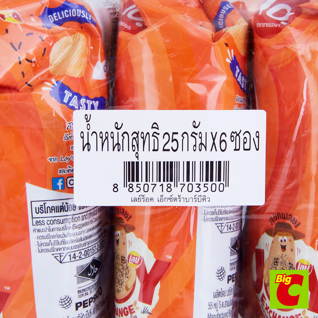 เลย์ ร็อค มันฝรั่งแท้ทอดกรอบแผ่นหยัก กลิ่นเอ็กซ์ตร้า บาร์บีคิว 25 ก. แพ็ค 6